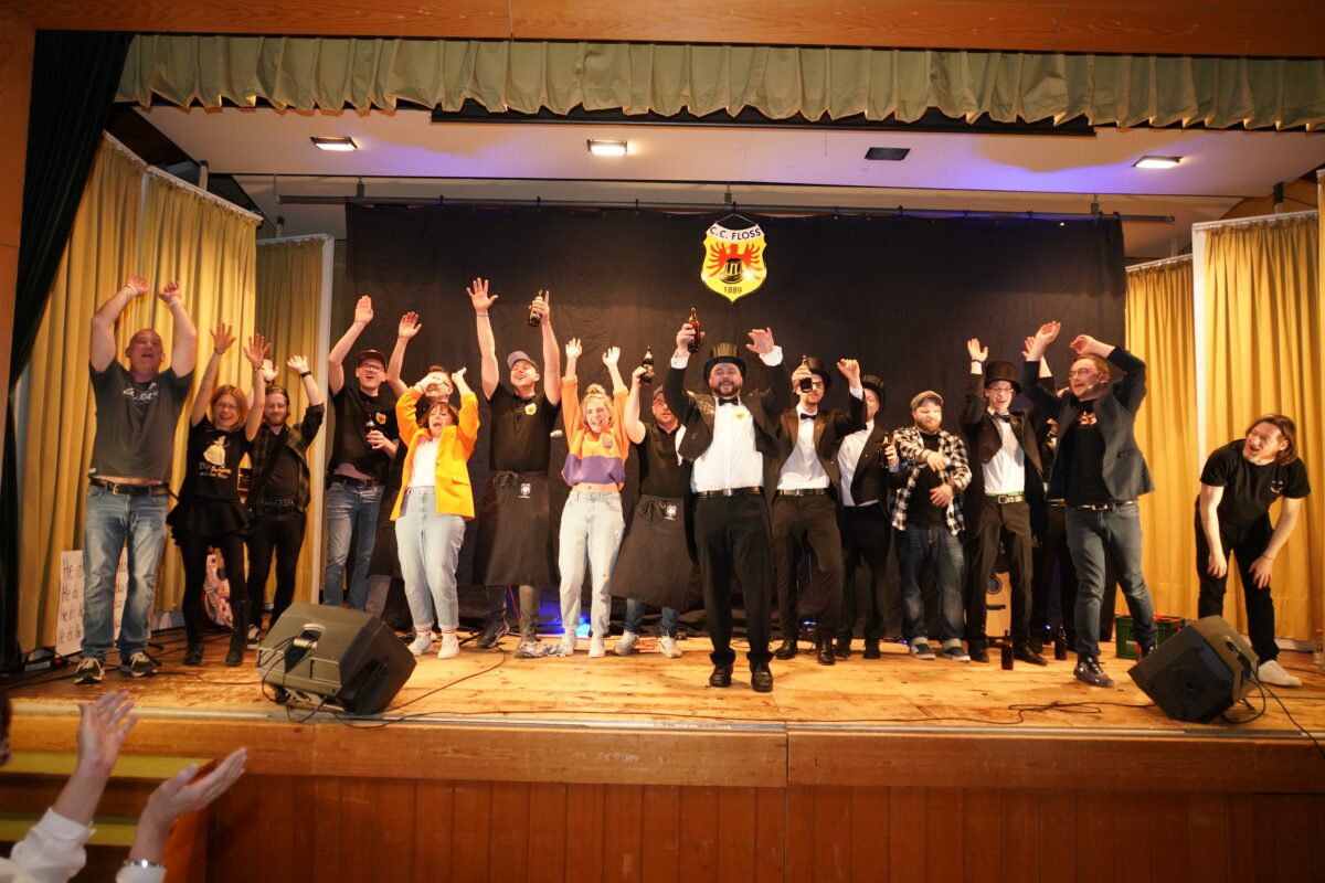 Ein großer Dank galt in der Mehrzweckhalle Floß dem Zylinderclub mit Oberzylinderträger Noah Lugert. Der Club brachte mit Getränken und Snacks Wohlfühlambiente in die Halle der „Flosser Krouan“. Franzi Glaser, die unvergleichliche, selbsternannte Rampensau aus Mitterhöll und der souveräne Stephan „Rosi“ Rosner aus Albersrieth hatten an diesem Abend Liedermacher sowie Comedians in die nördliche Oberpfalz gelockt.