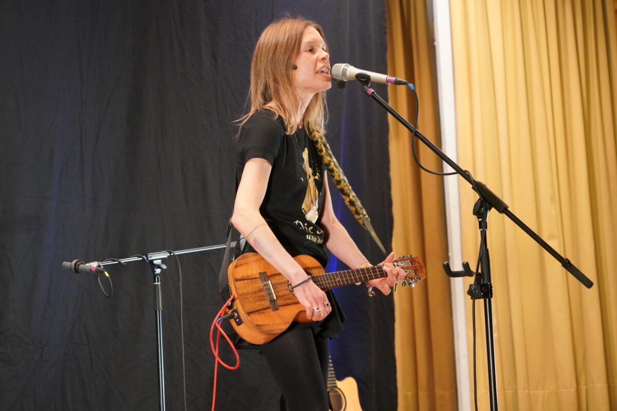 Die Dritte im Bunde des Comedy-Abends war die Landshuterin Andrea Limmer, “die Limmerin”. Die Kabarettistin nahm die Besucher mit viel Wortwitz mit zum Klassentreffen, wo sie ihren alten Klassenfreund „Obsti“, dessen Sternzeichen der Zapfhahn sei, getroffen hat. Er habe im letzten halben Jahr so viel getrunken: selbst wenn er künftig nur mehr Limo trinke, habe er Radler im Blut. Beim DB-Lied sang sie, begleitet von der Ukulele, von den Problemen bei der Fahrt mit der Deutschen Bahn.