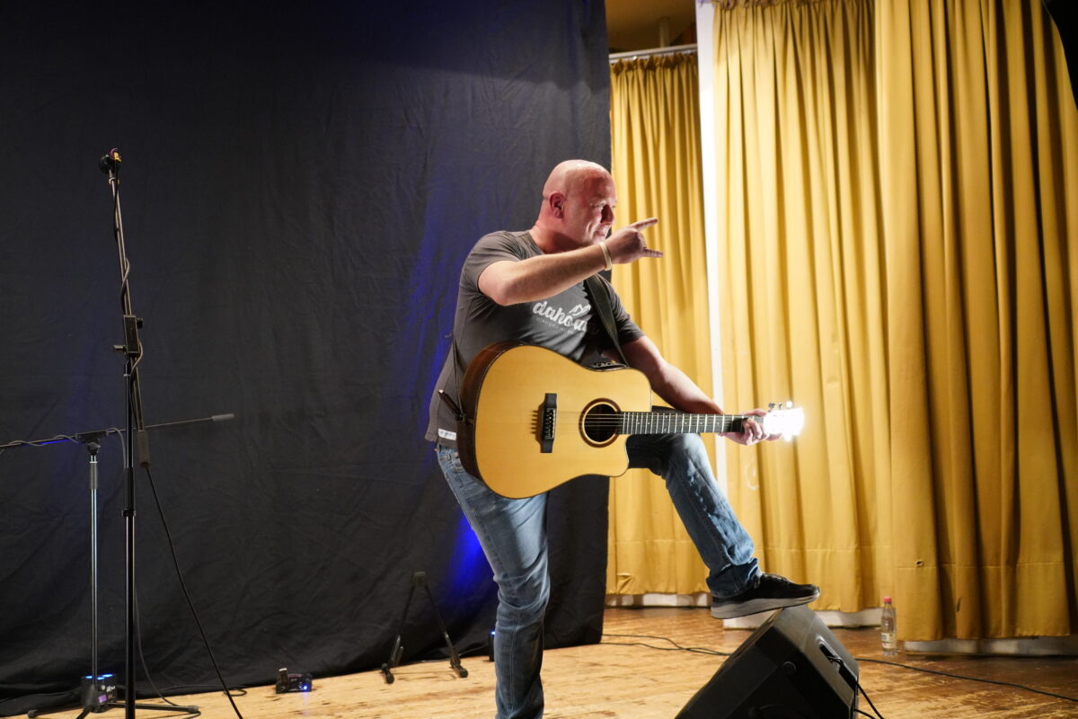 „Lieber 20 Minuten geschämt als eine Woche üben“, wies er auf seine angeblichen musikalischen Lücken hin. Er habe auch schon im Vorprogramm von Reinhard Fendrich in München in der Olympiahalle gespielt und gesungen – Fendrich in der Halle, Ebner draußen am Eingang. Äußerst unterhaltsam war seine strukturierte Sicht auf seine Bundeswehrzeit.