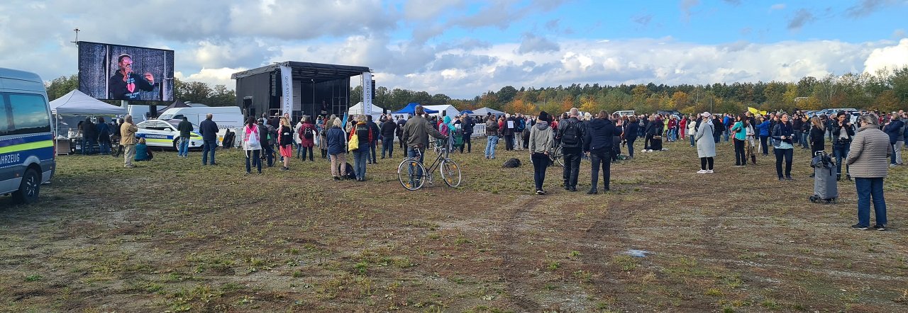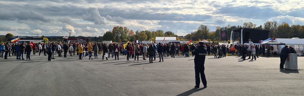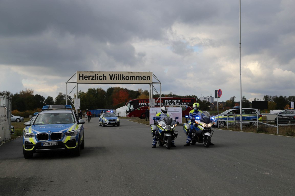 Mit halbstündiger Verspätung fuhr gegen 12:30 Uhr ein Korso aus einigen Fahrzeugen, darunter drei Busse, einige Autos und Fahrradfahrer, vom Weidener Festplatz los. Auch ein massives Polizeiaufkommen ist vor Ort. Den Höhepunkt erreicht die Demonstration gegen 14 Uhr mit einer Großkundgebung.