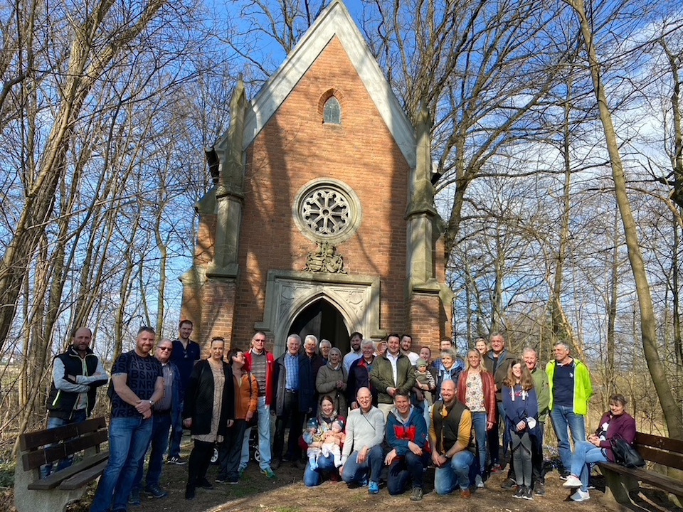 Kreisvorsitzender Stephan Gollwitzer begrüßte gemeinsam mit dem Fraktionsvorsitzenden Dr. Benjamin Zeitler die zahlreichen Wanderer. Nach langer Zeit ohne Veranstaltungen war es der CSU-Familie wichtig sich wieder zu treffen, gemeinsam etwas zu unternehmen und gute Gespräche zu führen. Vom Treffpunkt wurde zuerst zur Gruftkapelle der von Sazenhofen am Burgstallhügel gewandert.