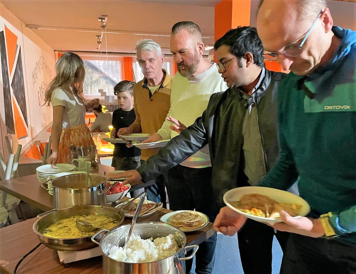 Den “Indischen Abend” mit Kaplan Raveendra Reddy Ponnapati ließen sich knapp 20 Teilnehmer nicht entgehen. Die Kolpingsfamilie lud dazu ein. Unter den Kochanweisungen des Kaplans wurde Curry auf zweierlei Art mit Reisvarianten zubereitet. Im Anschluss zeigte der Kaplan in einer anschaulichen Bilderpräsentation sein Heimatland Indien. Mit ehrlichen Worten wurde auch die dort herrschende Armut und große Not von ihm geschildert. Anstelle einer Kostenbeteiligung wurde daher von zweiter Vorsitzenden Vivian Woods um eine Spende gebeten.