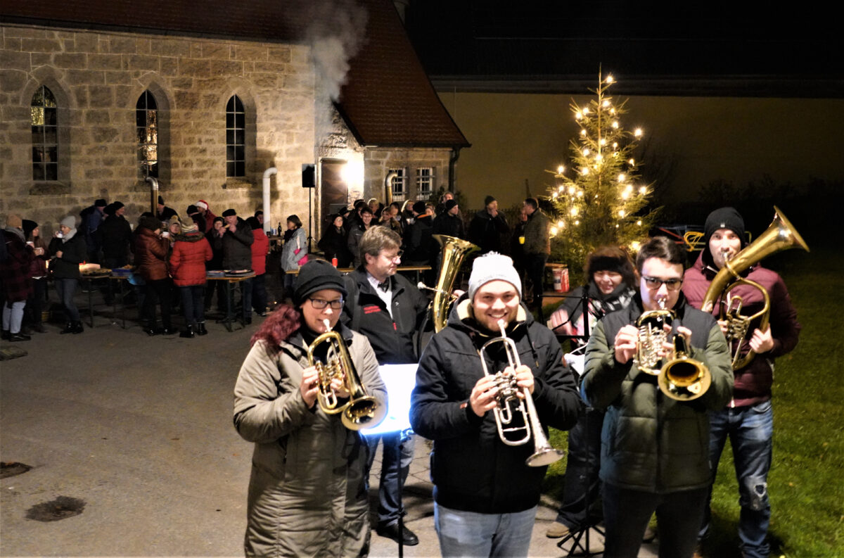 Sabine Dewald, Thomas Schwab, Renate Voith, Josef Pflaum sen., Jonas Kraus und Simon Schwab spielten mit ihren Blasinstrumenten an diesem Abend adventliche Weisen. Für knisternde Wärme vor der Dorfkapelle sorgten die drei dampfenden, riesigen Kultöfen mit den unverwechselbaren Namen „Schmied Mich“, „Preßl Sepp“ und „Weber Karl“.
