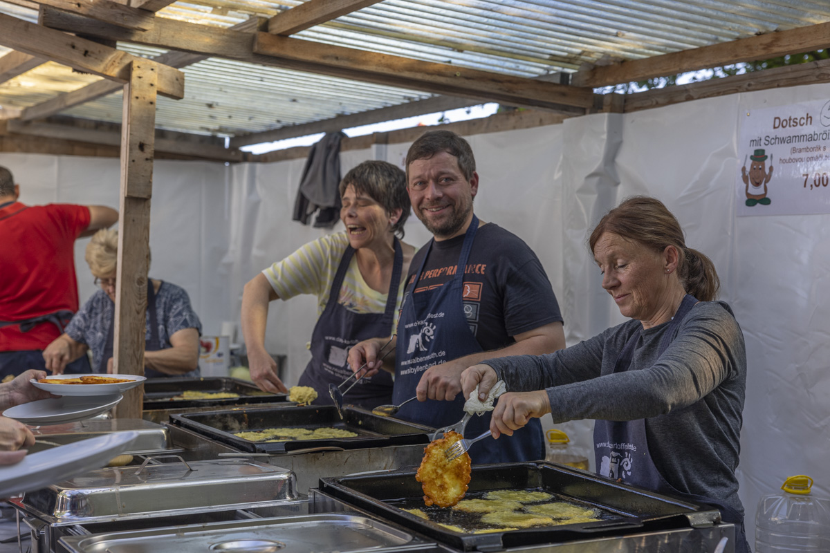 Der Tourismusverein Bad Neualbenreuth-Sibyllenbad, zahlreiche Gemeindehelfer und Händler von nah und fern haben am Sonntag ein riesiges Programm auf die Beine gestellt. So konnten sich die Gäste des Kartoffelfestes kulinarisch verwöhnt lassen. Im Mittelpunkt standen dabei die vielfältigen Gerichte rund um die Kartoffel, von Bratwurst-Dotsch bis hin zu Schweinebraten mit Knödel und Kraut, Liwanzen, Zwetschgenknödel und vielem mehr.