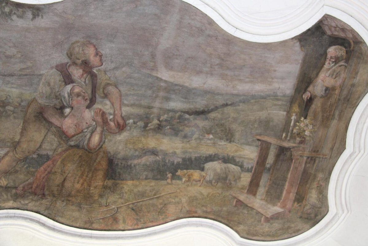 Ganz dem Unwetter preisgegeben stand die Felixstatue 17 Jahre, bevor sie 1729 ein Gewitter beschädigte. Nach Renovierung sind auch die Mittel zum Bau einer hölzernen Kapelle zusammengebracht worden, um die Heiligenfigur in Zukunft besser zu schützen. Im Türbogen zur südlichen Kirchentür der Wallfahrtskirche ist diese Kapelle abgebildet.