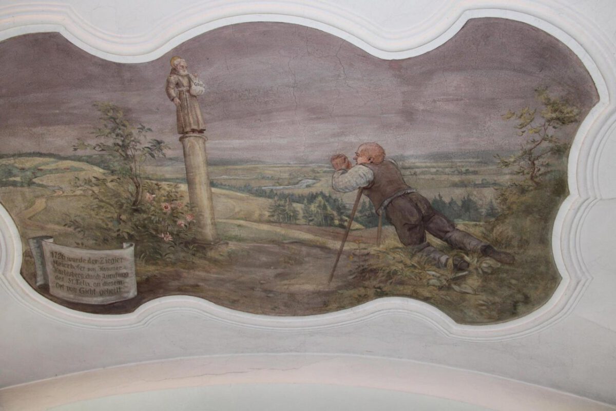 Darin verzeichnet ist zum Beispiel, dass sich im Jahre 1726 der Ziegler Meierhöfer vom nahen Hammerharlesberg, der stark an Gicht litt, auf Anrufen des Heiligen von seinem Leiden befreit worden war und zwar in dem Monat, als er sich zur Felixsäule geschleppt hat. Er bestätigt dies selbst im Wunderbuch Nr. 2. Die Begebenheit ist heute noch teilweise im Bild oberhalb der nördlichen Kirchenpforte festgehalten.