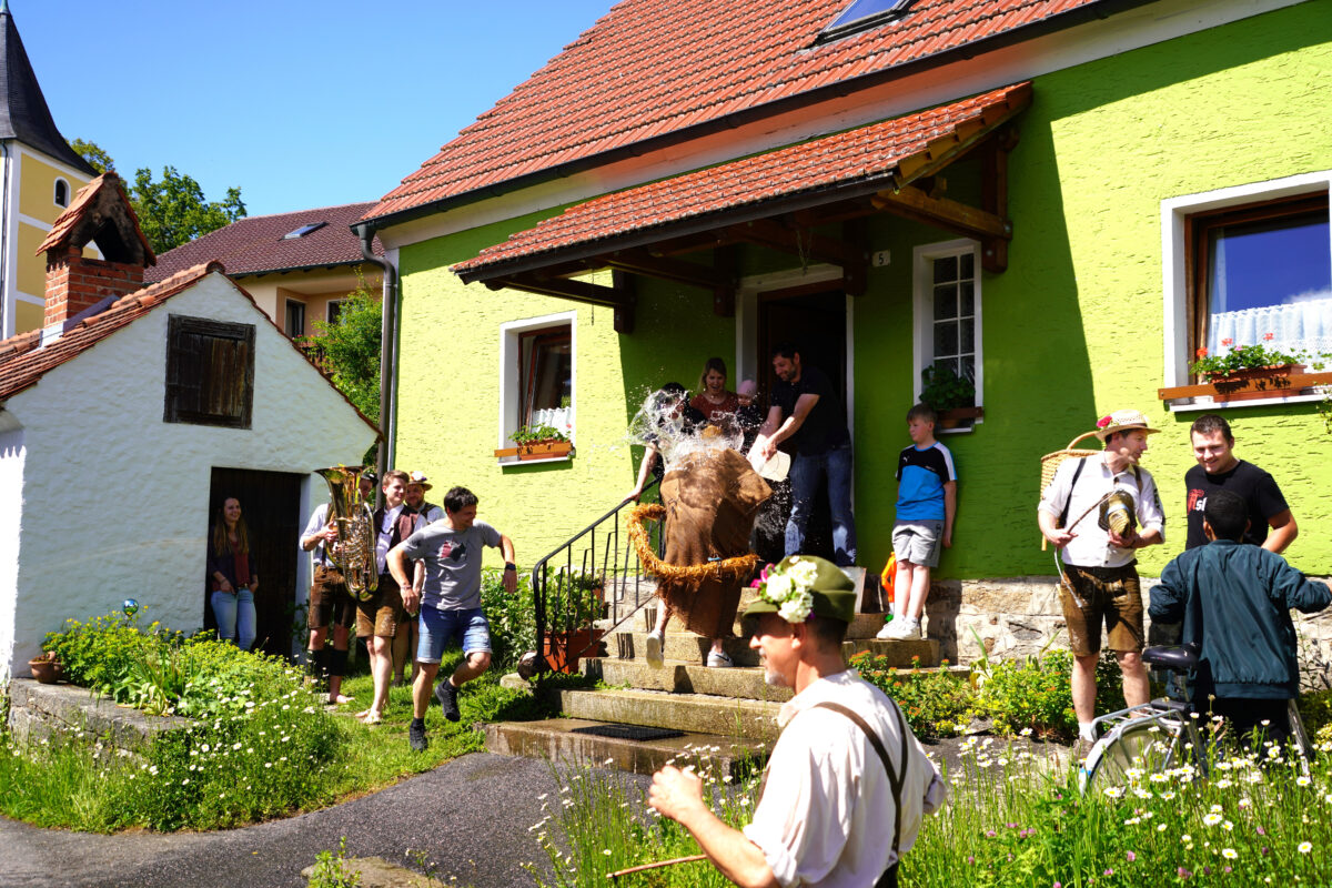 Ein seit über 155 Jahren praktiziertes Ritual lebte so wie jedes Jahr in der Marktgemeinde Waldthurn auf. An diesem Pfingstmontagnachmittag ging es nicht gerade leise im schönen Dorf Lennesrieth zu. Die berühmten Lennesriether Pfingstschwanzfahrer zogen durch die Straßen, wildes Geschrei von Junggesellen, Peitschenknallen und zünftiger Musik von Joni Kraus, Consti Stahl und Maxi Steiner war zu hören. Der Start des Spektakels war auch in diesem Jahr nicht vorhersehbar – es musst erst ein Pfingstschwanz gefunden werden.