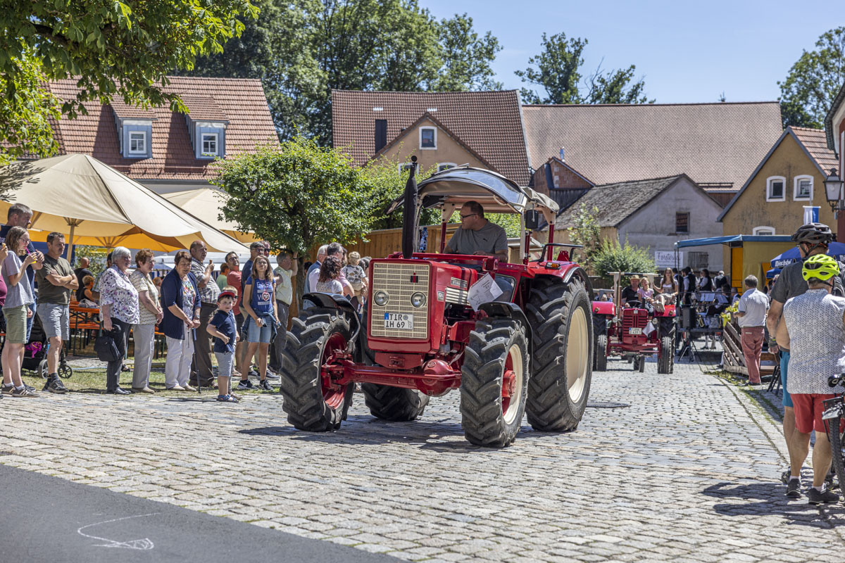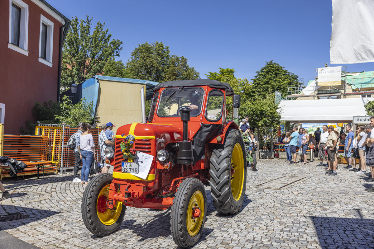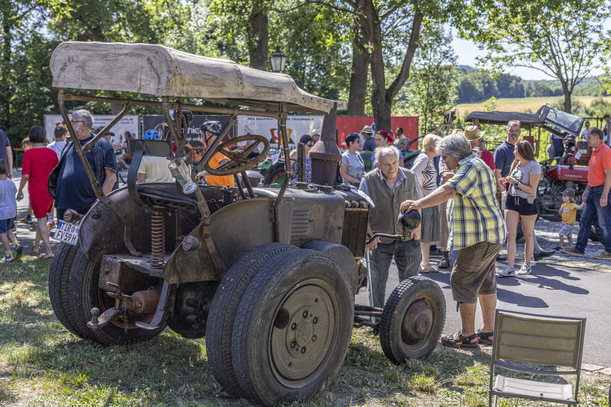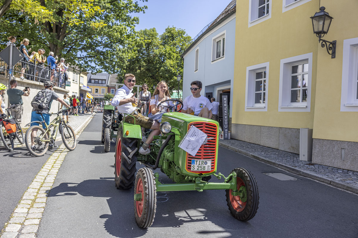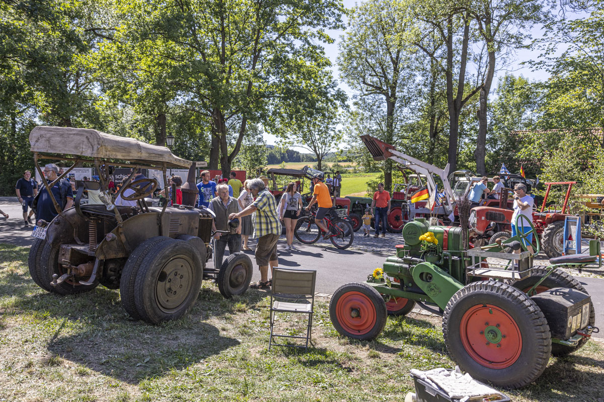Ein Highlight war das 8. Bulldog-Treffen des Konnersreuther Bulldog Stammtisches. Die Traktoren wurden von den großen und kleinen Besuchern bestaunt. Besonders natürlich während des spektakulären “Festumzuges”, der an den Besuchermassen vorbeizog. Wer sich etwas mehr Zeit nahm, konnte unglaubliche Dinge bei den Oldie-Fans erleben. Denn nicht nur die Modellvielfalt und der Erhaltungszustand der Gefährte ist erstaunlich. Auf so manchem Bulldog war ein Bierfass montiert und sogar Bockwürste – frisch aus dem Motorblock – wurden serviert.