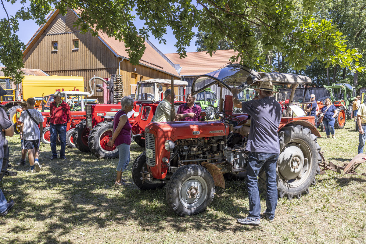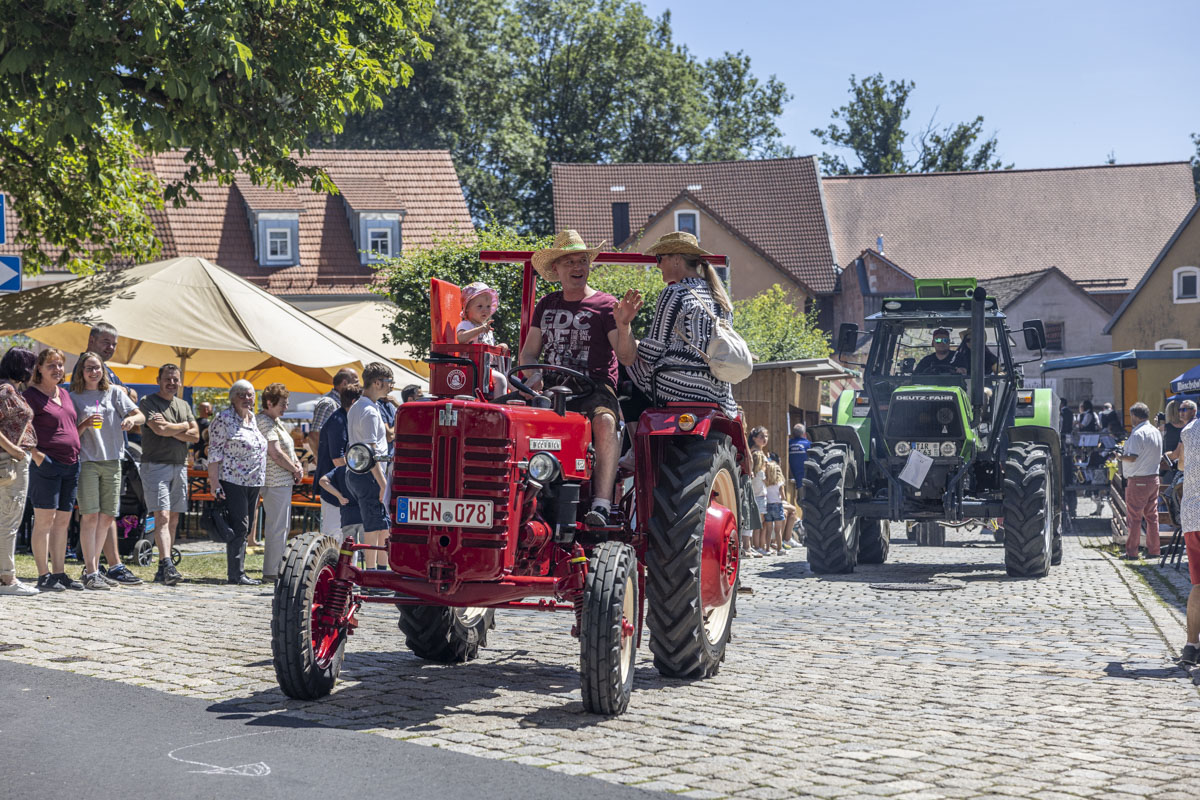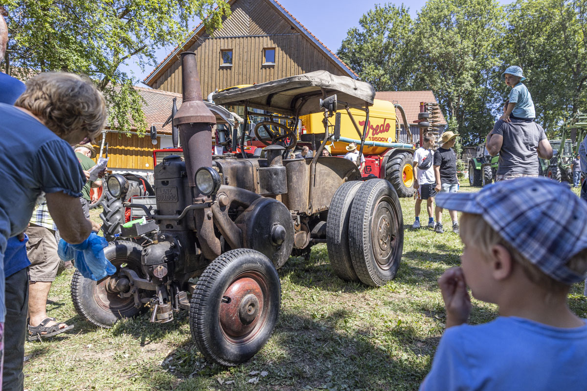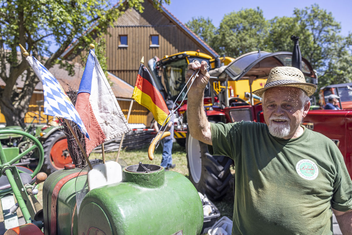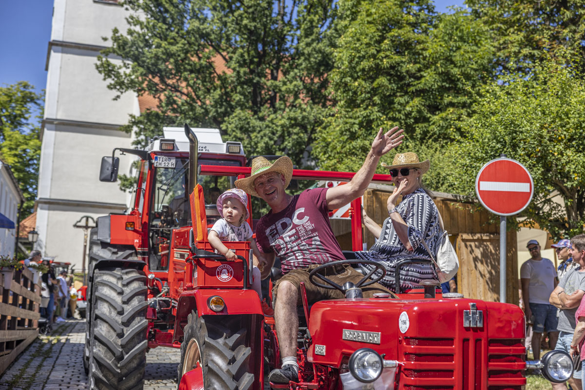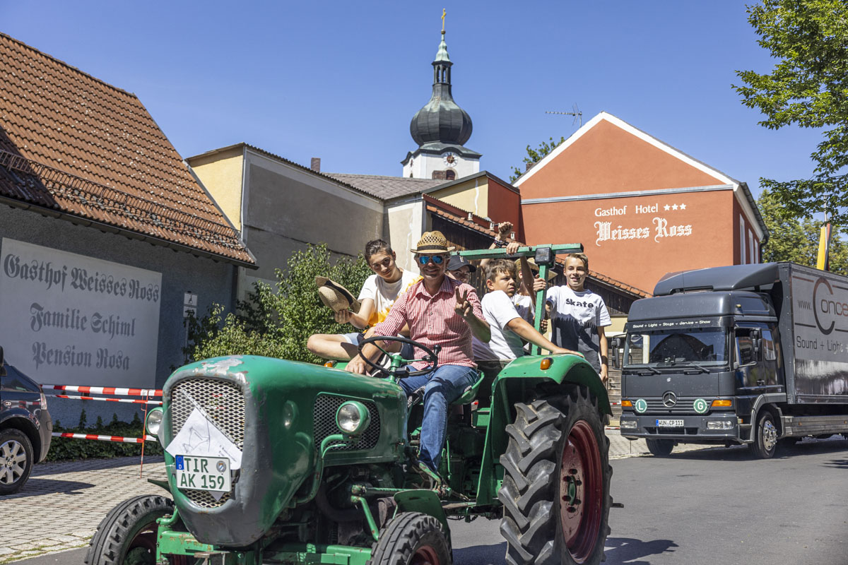 Ein Highlight war das 8. Bulldog-Treffen des Konnersreuther Bulldog Stammtisches. Die Traktoren wurden von den großen und kleinen Besuchern bestaunt. Besonders natürlich während des spektakulären “Festumzuges”, der an den Besuchermassen vorbeizog. Wer sich etwas mehr Zeit nahm, konnte unglaubliche Dinge bei den Oldie-Fans erleben. Denn nicht nur die Modellvielfalt und der Erhaltungszustand der Gefährte ist erstaunlich. Auf so manchem Bulldog war ein Bierfass montiert und sogar Bockwürste – frisch aus dem Motorblock – wurden serviert.