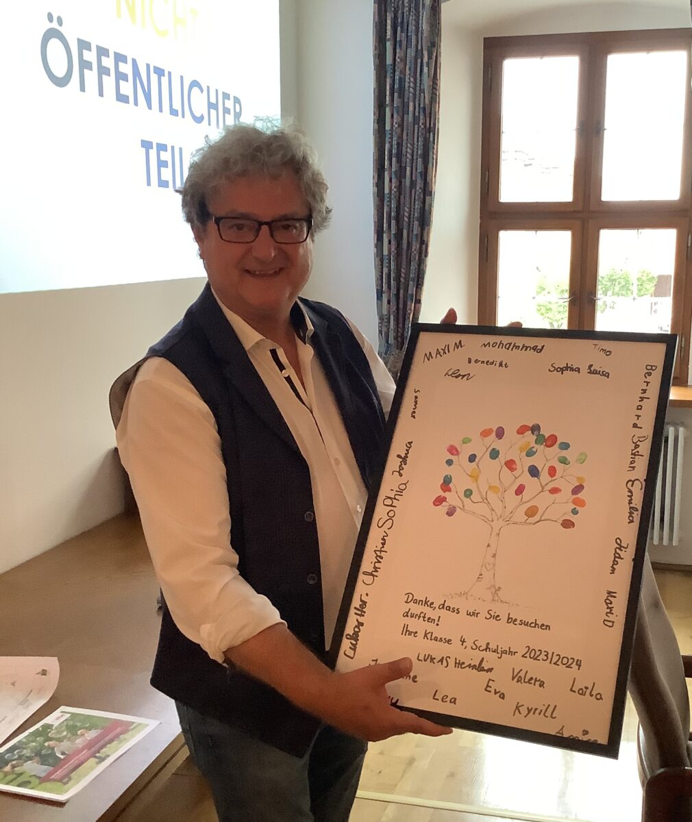 Ein besonders eindrücklicher Moment für die Klasse war der Besuch im Trauungszimmer, wo zwei Schüler, Sophia und Leon, auf spielerische Weise das Ja-Wort vor dem Bürgermeister gaben. Dieser Ausflug in die Erwachsenenwelt war für alle beteiligten eine unterhaltsame und lehrreiche Erfahrung. „Das hat mir sehr viel Spaß gemacht“, resümierte Bürgermeister Bernhard Stangl und sicherte zu, dass die schriftlichen Dankesworte der Klasse, die ihnen sehr wichtig waren, „natürlich einen Platz im Rathaus finden werden“.