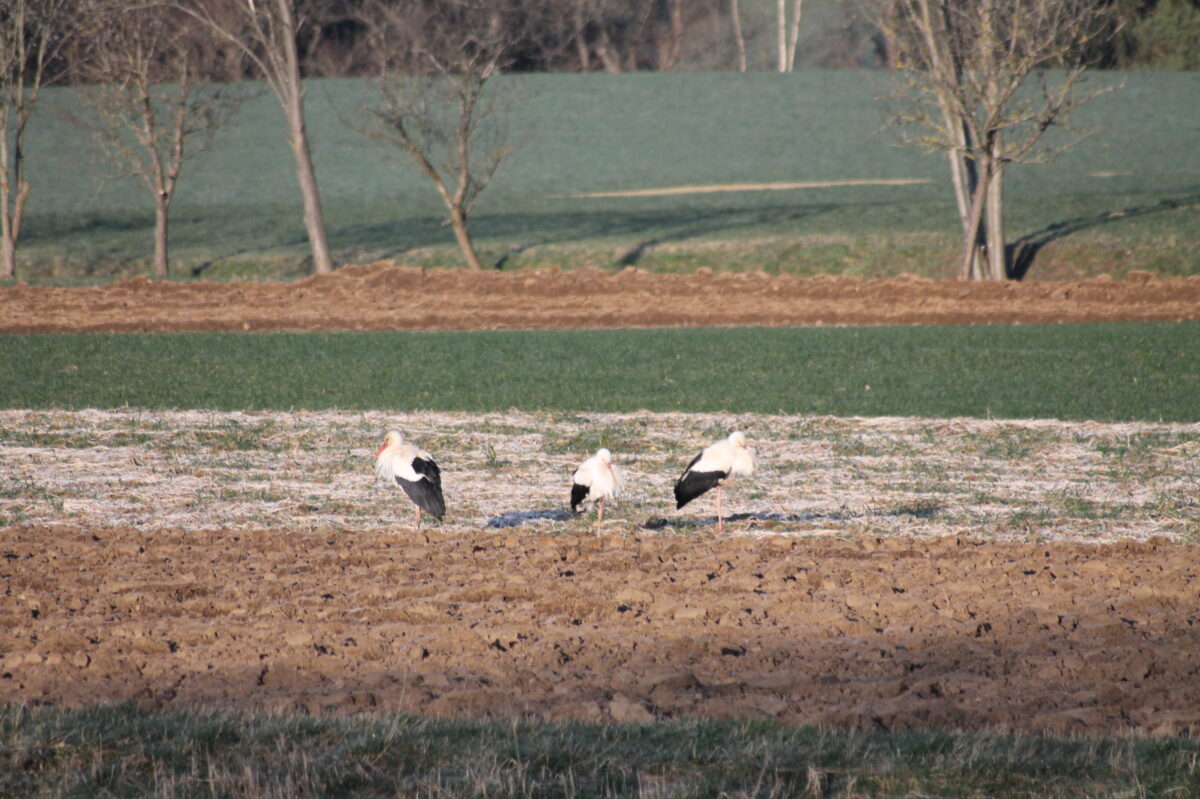 Drei Vögel sind derzeit im Bereich des Kinderhauses in Neukirchen zu St. Christoph zu beobachten, am Mittwochfrüh bei der Suche nach Nahrung. Ob Meister Adebar gar für Kindersegen sorgen wird?