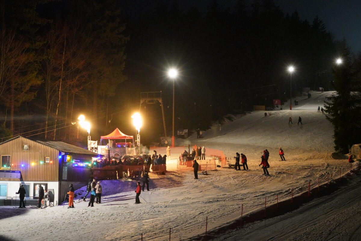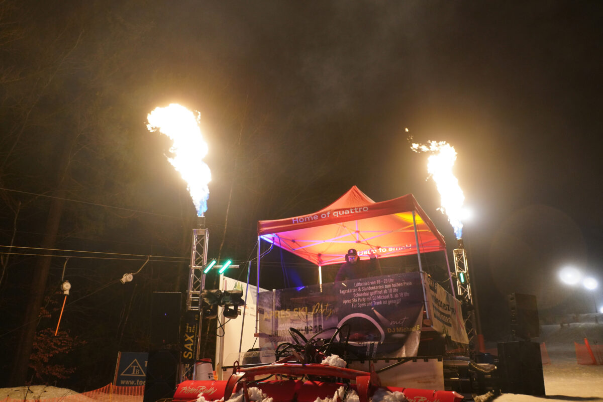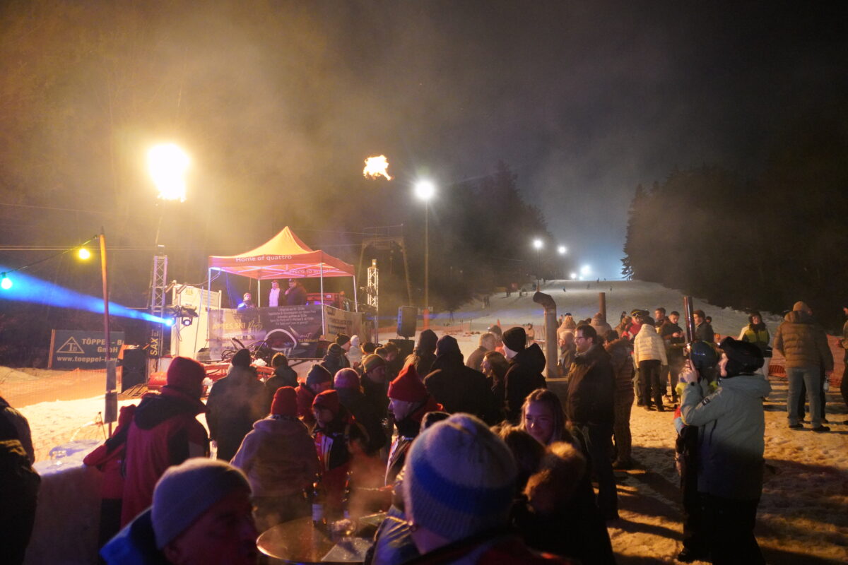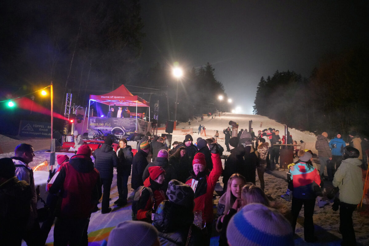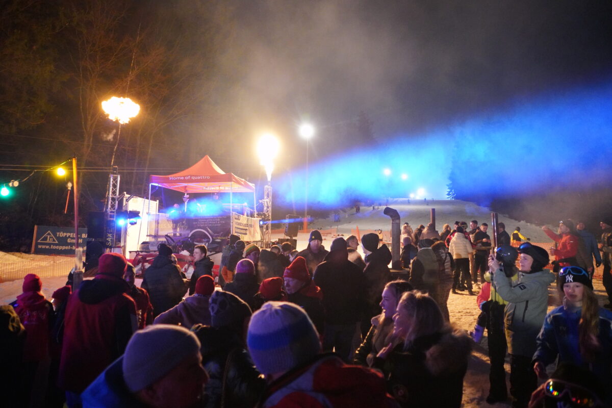 Für besondere Stimmung sorgte DJ Michael B., der sein Disco-Pult spektakulär auf der großen Pistenraupe aufgebaut hatte. Von dort aus heizte er dem Publikum mit Partykrachern wie „Sweet Caroline“ kräftig ein. Unterstützt von einer Feuermaschine und passenden Lichteffekten verwandelte sich der Skihang in eine Open-Air-Partyzone. Die Veranstaltung war zugleich als Dankeschön gedacht: zum einen an die inzwischen fast 500 Mitglieder des Vereins, zum anderen an die vielen Kinder, Jugendlichen und Erwachsenen, die dem Fahrenberg treu bleiben. Als zusätzliches Zeichen der Wertschätzung wurden die Preise für die Skiliftfahrten an diesem Tag halbiert.