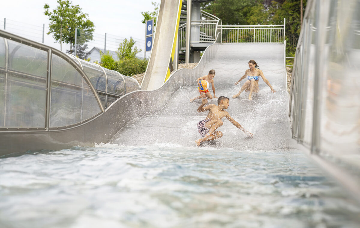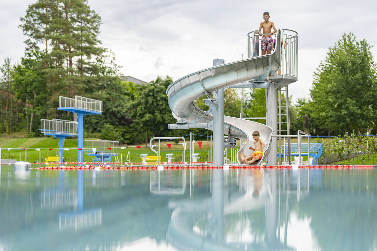 2023 war im Zuge des ersten Sanierungsschritts die Technik im Waldbad erneuert worden. Dabei entstanden auch zwei neue Abenteuerrutschen, die Freefallrutsche für alle “Adrenalinjunkies” und eine breite Wellenrutsche, auf der sich mehrere Wagemutige gleichzeitig ins kühle Nass stürzen können.