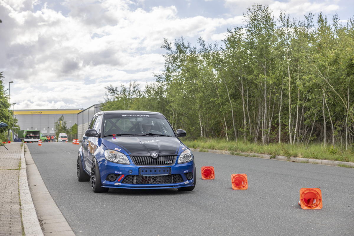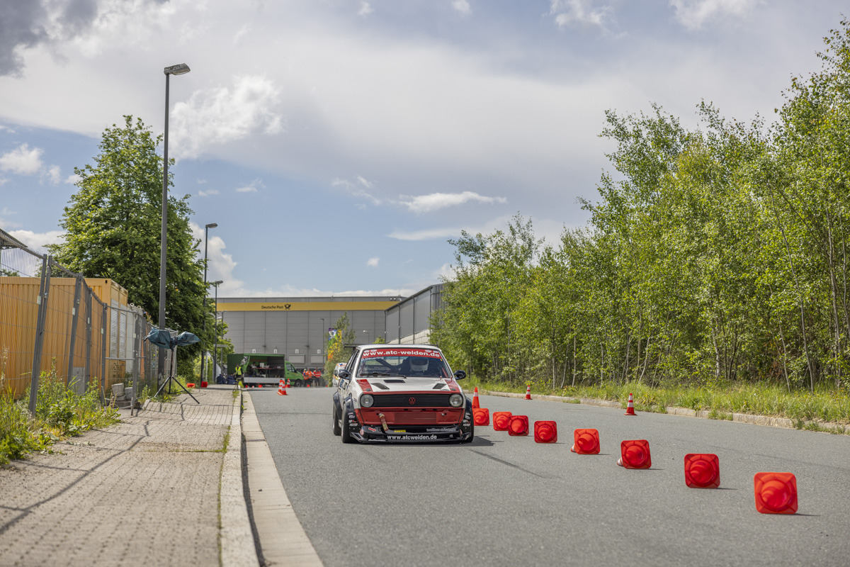 Auf der Strecke im Weidener Gewerbegebiet müssen die Fahrer, egal ob sie mit einem front-, heck- oder allradgetriebenen Fahrzeug antreten, ihre Ideallinie zwischen den eng gesteckten Pylonen und scharfen Kurven finden.