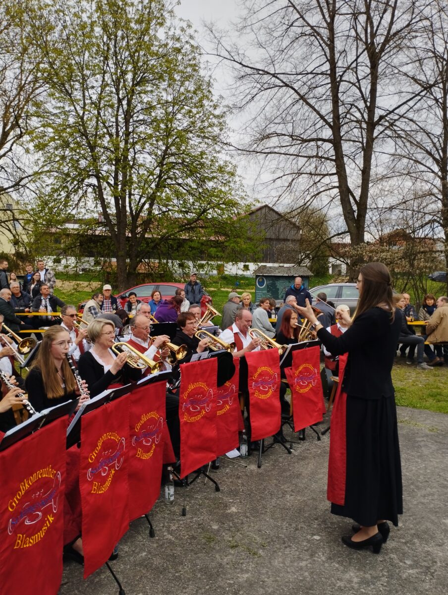 Für das seelische Wohl der Besucherinnen und Besucher war ebenfalls bestens gesorgt. Die Großkonreuther Blaskappelle mit ihrer Dirigentin Theresa Bäuml spielte beste bayrische Blasmusik. Wohl eine absolut festlich-stolze Stimmung herrschte, als die Musiker nach dem Ende des Aufstellens die Bayrische Nationalhymne zum Besten gab. Es erfüllte so manchen Anwesenden mit Stolz, in einem solchen schönen Land leben zu dürfen. Die Alltagssorgen waren weit weg und man unterhielt sich gerne mit seinen Tischnachbarn.