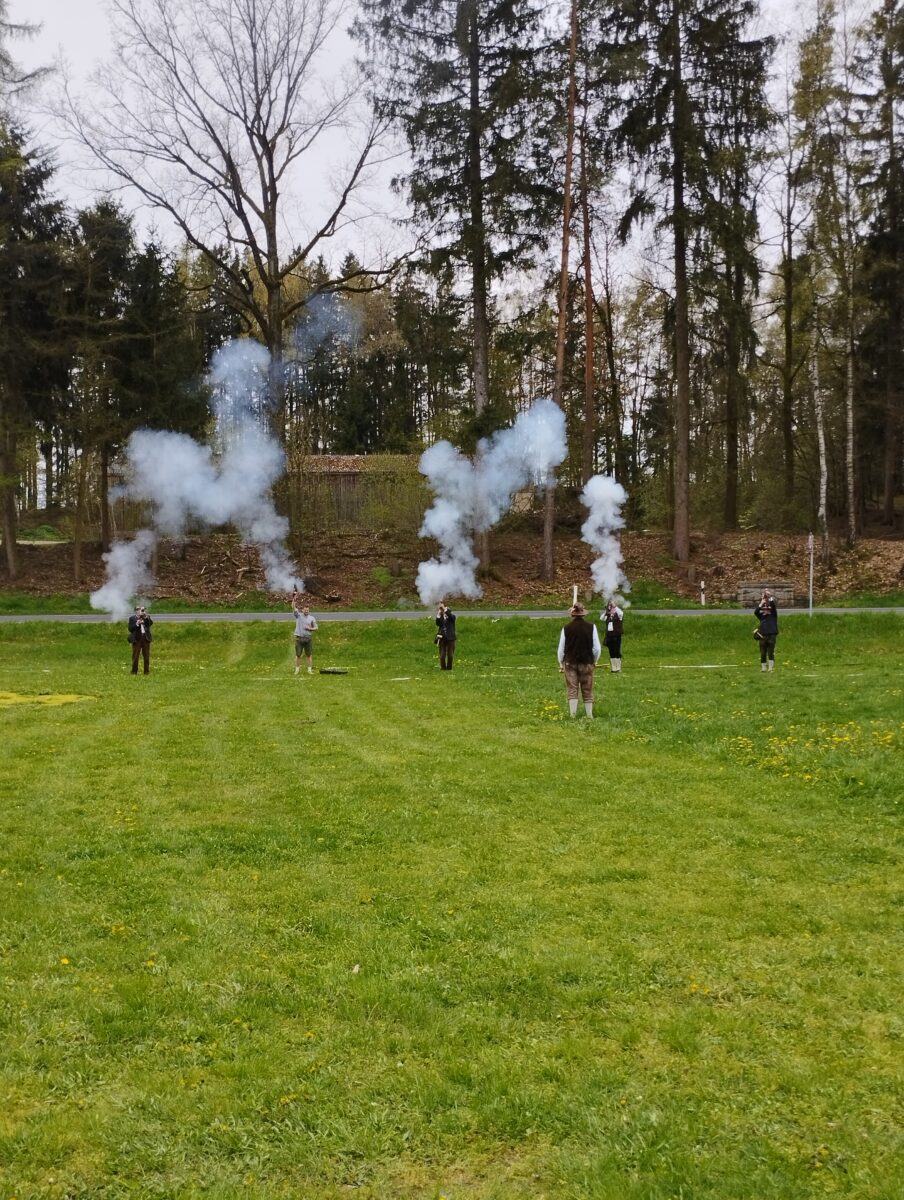 Und wenn schon ein Festtag im Dorf ist, dann lässt man es auch ordentlich krachen. Dafür sorgte dann die Böllerschützengruppe aus Tirschenreuth. Zu einem solchen Maibaumaufstellen gehört natürlich auch das Leibliche Wohl. Ohne Zweifel wurde an diesem Tag in Beidl bestens für Dasselbige gesorgt. Es gab selbstgebackene Kuchen, Kaffee, Bratwürste und Steaks, Pommes Frites und natürlich in ausreichender Menge Bier, das bayrische Nationalgetränk. Selbstverständlich auch nicht alkoholische Flüssigkeiten.