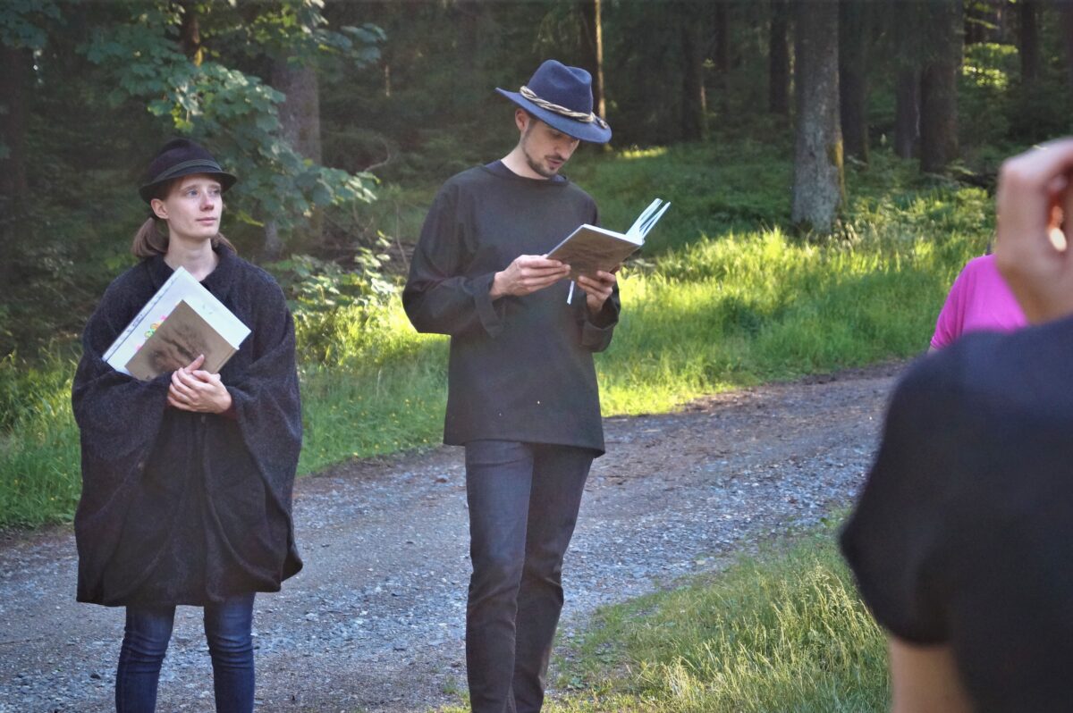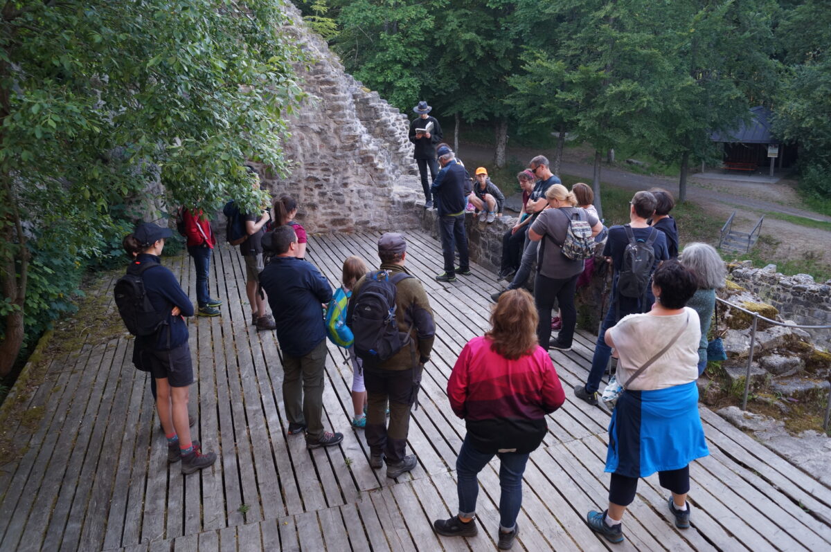 Am Vorabend ging es ebenfalls zum Weißenstein: Katrin Meyer und Benedikt Lippert von der Gesellschaft Steinwaldia Pullenreuth lasen Sagen aus dem Buch „Sagenschatz des Steinwaldes“ an den Originalschauplätzen vor. Die Geschichten handelten vor allem von den ehemaligen Burgbesitzern, dem Adelsgeschlecht der Familie Notthafft.