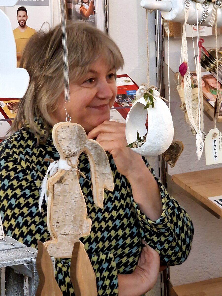 Passend zum Beginn der Osterferien präsentierten die Händler und Kunsthandwerker an ihren Ständen viele tolle Überraschungen. In der Aula und im Erdgeschoss fanden sich 20 Aussteller, die Besucher waren begeistert und sehr zufrieden. So hatte die Geschäftsführerin des Stadtmarketings Andrea Schild-Janker die Aula zusätzlich genutzt und mit ihren Mitarbeiterinnen und Helfern kurzfristig an kleinen Tischen Kaffee und Kuchen angeboten.