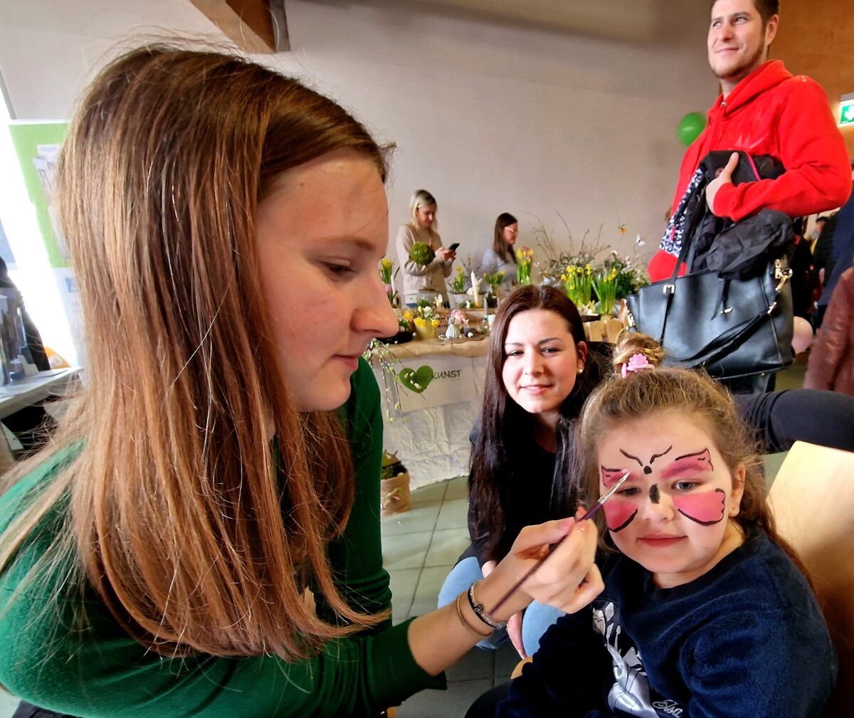 Auch das leibliche Wohl kam nicht zu kurz, österliche Leckereien, die Besucher ließen sich Osterbrot, Schokohasen und Backwaren schmecken oder nahmen es als Geschenk mit nach Hause. Für die kleinen Gäste war ebenfalls gesorgt, ein Highlight war das Kinderschminken, stolz zeigten die Kinder ihre Glitzertattoos und auch Mandalas durften sie ausmalen.