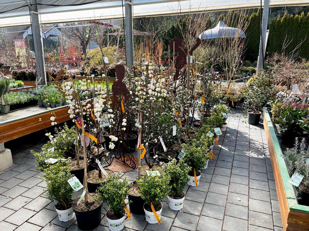Für Farbe im Garten sorgen aktuell frühjahrsblühende Gehölze wie Zier-Kirschen, Magnolien und Zaubernuss. Die dürfen auch jetzt schon gepflanzt werden. Auch Zier-Äpfel sorgen für Abwechslung – und helfen bei der Bestäubung von anderen Apfelsorten. Die Blut-Pflaume sieht nicht nur jetzt sondern auch im Herbst mit ihrem dunkelroten Laub umwerfend aus.