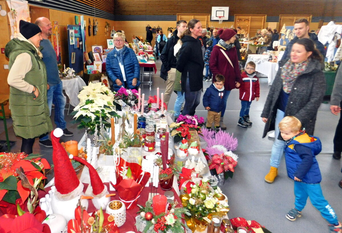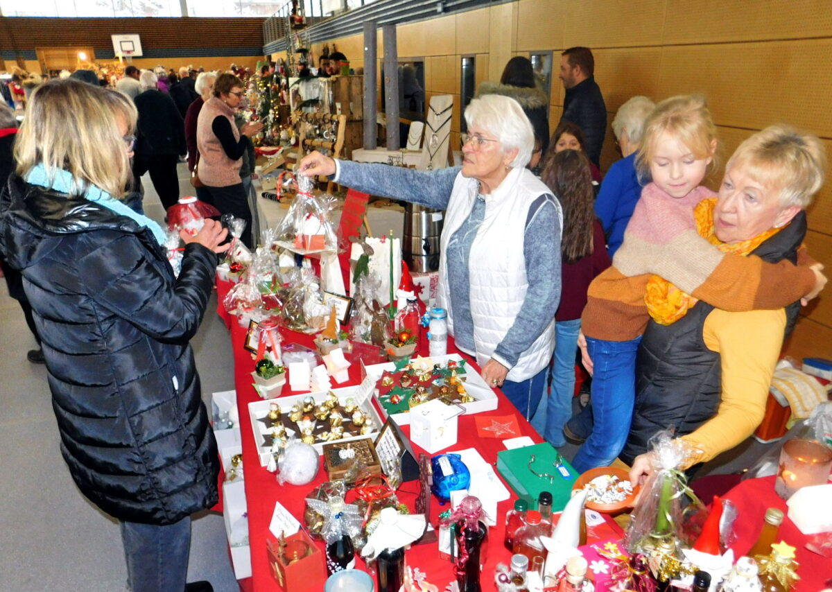 Das evangelische Posaunenensemble unter Leitung von Alfred Kreutzer ließ zur Eröffnung Weihnachtslieder durch das weite Rund der Arena erschallen. Bis kurz vor 17 Uhr wurde unter dem Motto “Gebasteltes und Genähtes, Blumiges und Holziges für Advent und Weihnachten” in und vor der Halle sowie im Foyer Adventsdekorations- und Weihnachtsartikel sowie mancher Leckerbissen aus eigener Produktion angeboten.