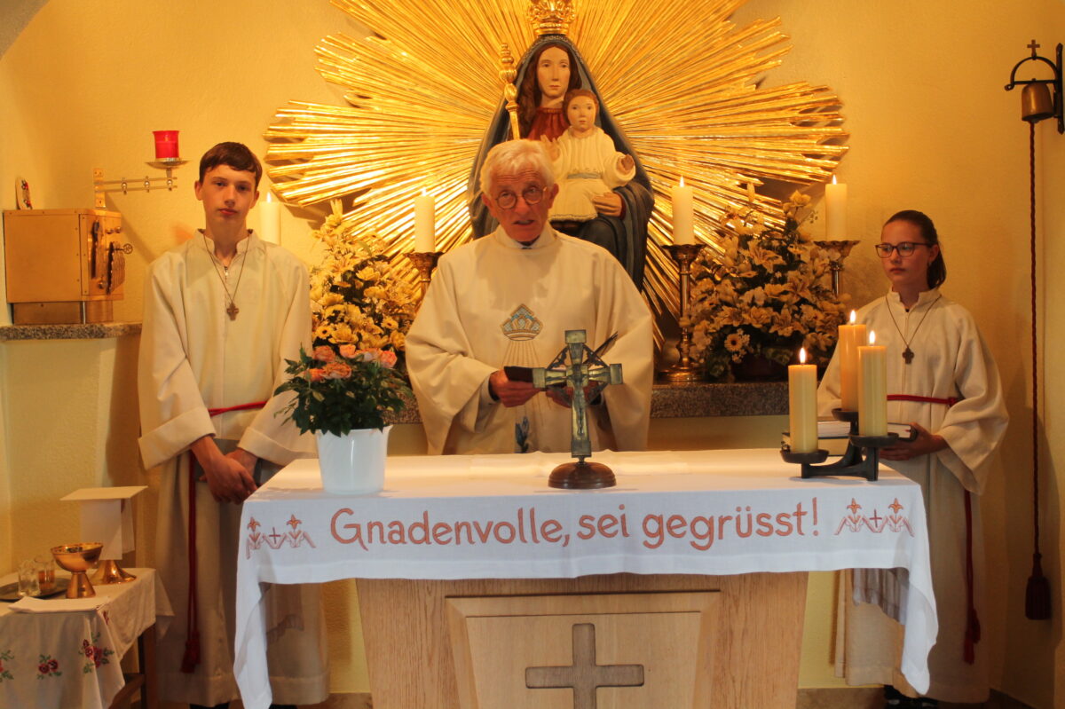 Am Ende der Eucharistiefeier galt sein Dank allen für die Mitwirkung, darunter Schwester Bonita und Klara Kick für den Gesang, Lektorin Monika Adomat sowie den Abordnungen des Kapellenausschusses, der Feuerwehr und der Soldaten- und Kriegerkameradschaft Brünst.