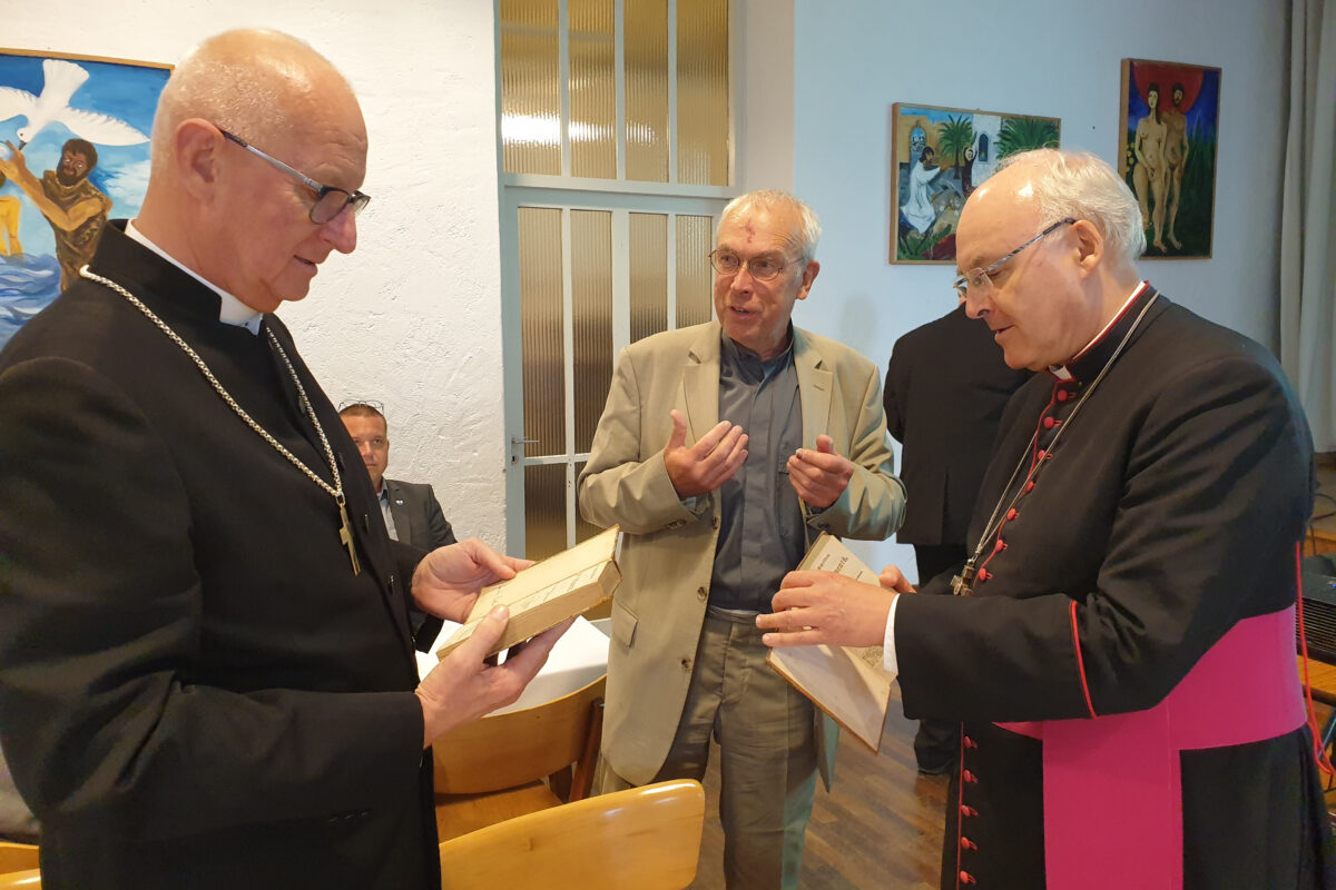 Beim abschließenden Empfang im Gemeindesaal der Christuskirche in Sulzbach-Rosenberg dankte Diözesanbischof Rudolf Voderholzer den Organisatoren und Referentinnen und Referenten des Symposiums für ihre engagierte Arbeit. Hans-Peter Pauckstadt-Künkler überreichte den beiden Bischöfen als Dank für die Schirmherrschaft für das Symposium ein Geschenk mit symbolischer Aussagekraft: eine Ausgabe der ersten ökumenischen Bibel, gedruckt 1830 bzw. 1858 in der Druckerei Seidel in Sulzbach.