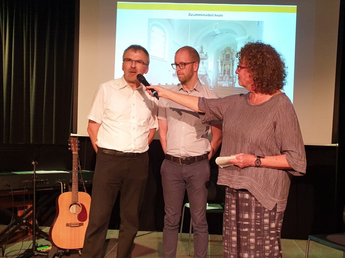 Gleichzeitig warfen sie auch einen Blick auf aktuelle Projekte, in denen ökumenische Zusammenarbeit gelebt und erprobt wird. Der evangelische Pfarrer Klaus Stolz stellte das Ökumenische Zentrum Emmauskirche in Bad Griesbach vor. Gemeinsam mit seinem katholischen Kollegen bietet er eine spirituelle Anlaufstelle für Kurgäste und weitere Interessierte. Sie verstehen ihre Kirche als „ein Experimentierlabor für Ökumene, offen, für alle Menschen, das Lust macht auf christlichen Glauben.“ Ihre Arbeit sei eine Art „ökonomische Ökumene“, wie Stolz mit einem Augenzwinkern erläutert. Denn durch die Zusammenarbeit, seien deutlich mehr Angebote möglich, als wenn jede Konfession für sich allein tätig wäre.