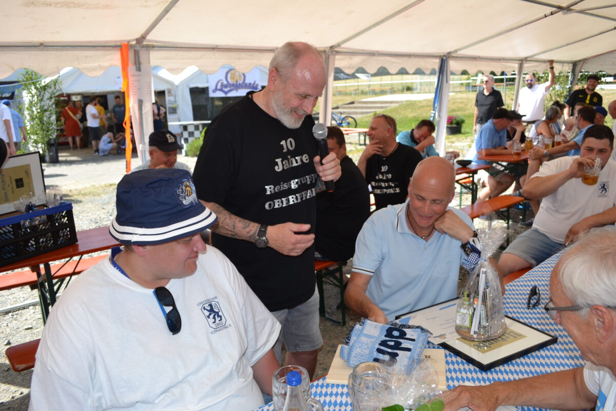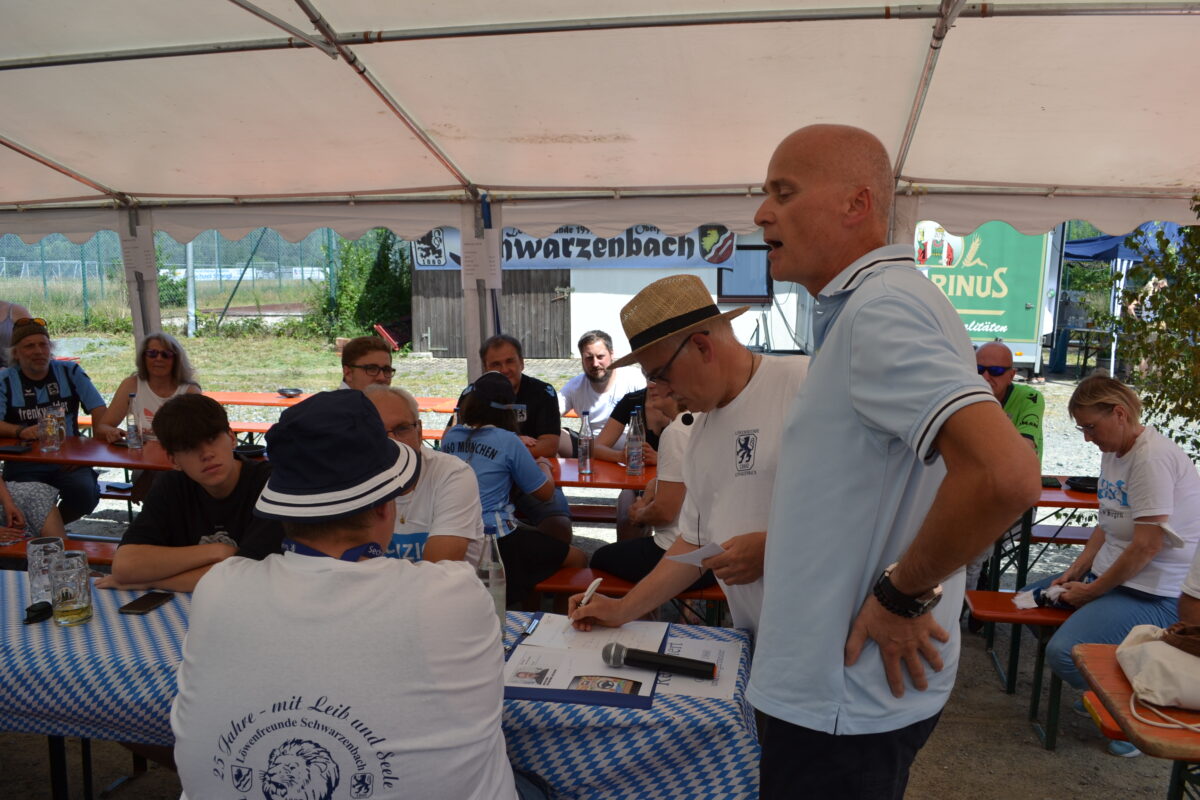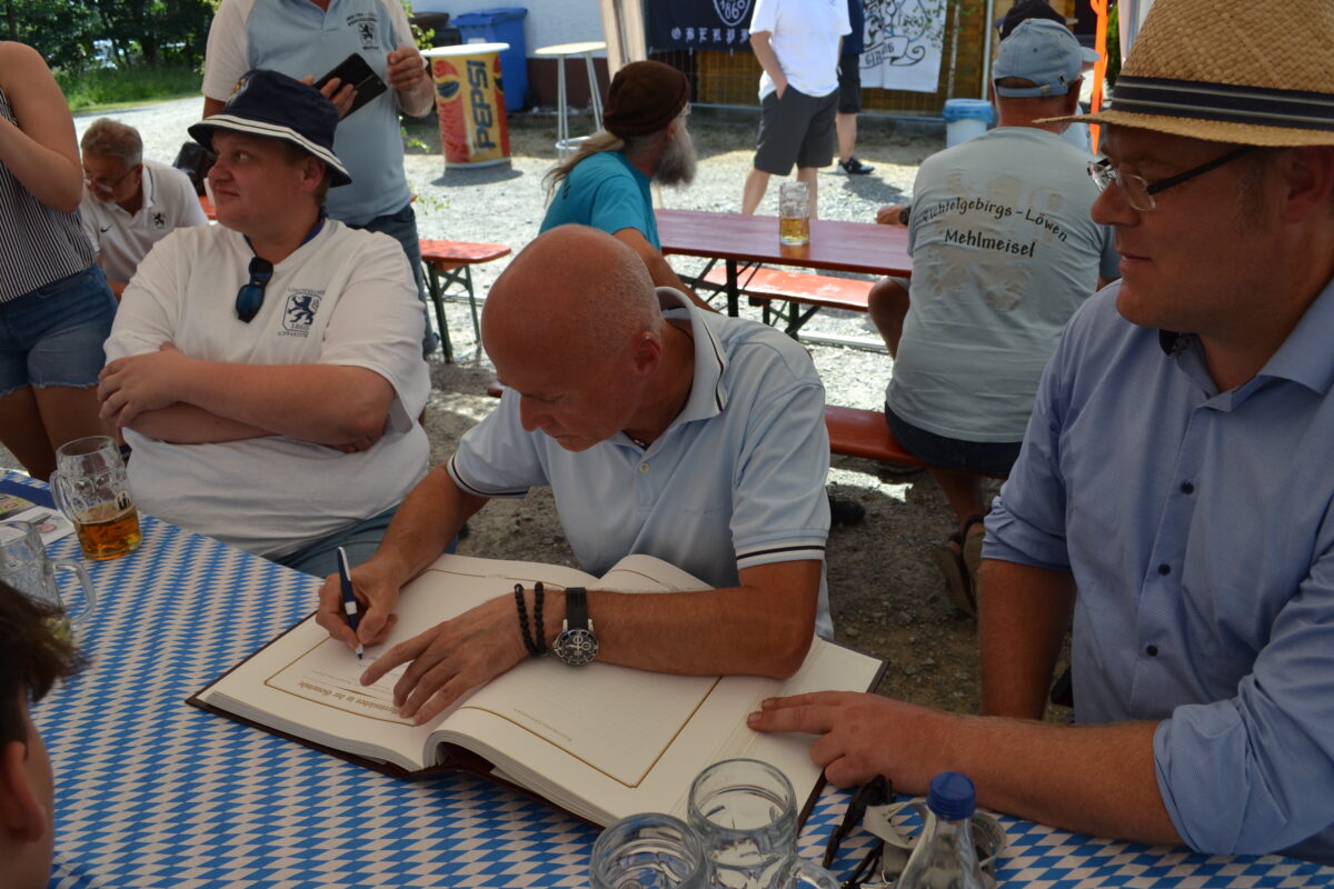 Leutselig und volksnah mischten sie sich unters schwitzende Löwenvolk, beantworteten bereitwillig die Fragen der circa 100-köpfigen Fangemeinde im brütend heißen Festzelt, das die Löwenfreunde aus Anlass ihres 25-jährigen Jubiläums und des zehnjährigen Bestehens der Reisefreunde Oberpfalz aufgebaut hatten.