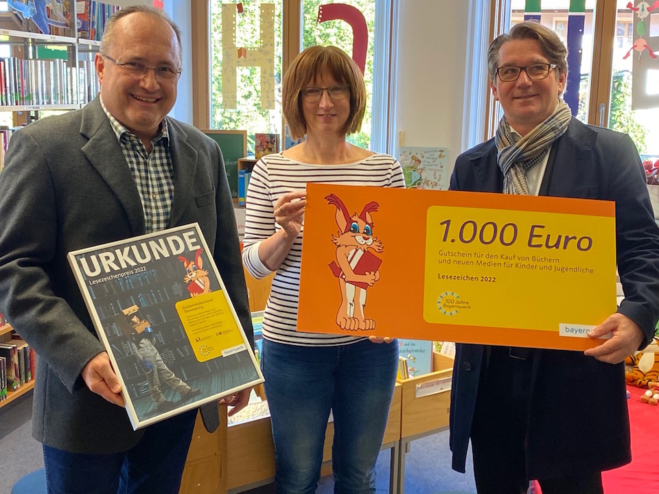 Lesebegeisterte in Tännesberg dürfen sich auf neue Bücher freuen: Die Gemeinde- und Pfarrbücherei erhält eines von 50 mit jeweils 1.000 Euro dotierten „Lesezeichen“. Markus Windisch, Kommunalbetreuer des Bayernwerks, hat den Preis an Bürgermeister Ludwig Gürtler und an die Leiterin der Gemeinde- und Pfarrbücherei, Monika Haberl, übergeben.