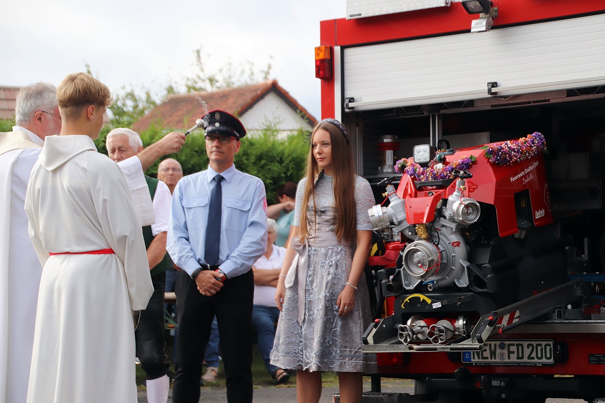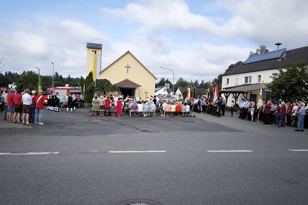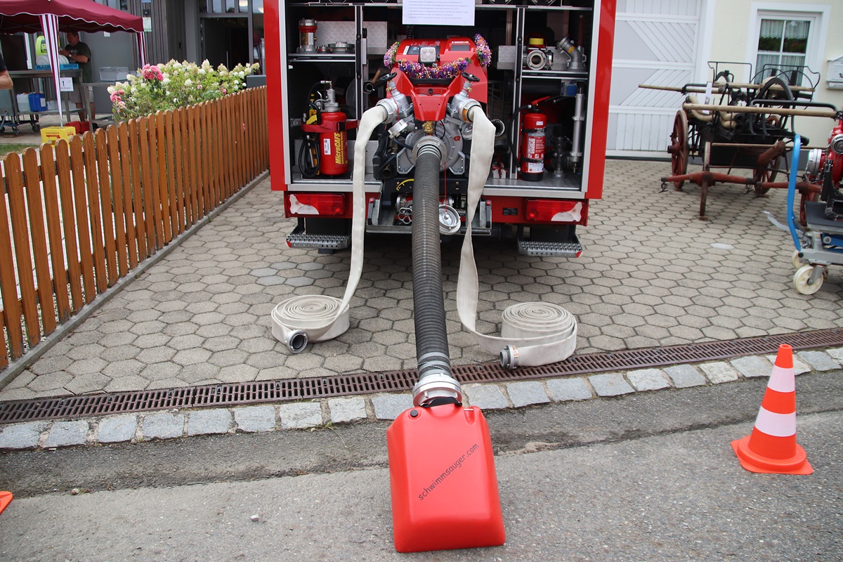 Der Tag begann mit einem feierlichen Gottesdienst vor der Kapelle zu Mariä Himmelfahrt, zelebriert von Stadtpfarrer Edmund Prechtl. Die Musikkapelle Dießfurt sorgte für die musikalische Begleitung und trug zur feierlichen Atmosphäre bei. Am Ende des Gottesdienstes weihte Prechtl die neue Pumpe der Freiwilligen Feuerwehr. Dieser besondere Moment wurde mit einem Segen für alle Feuerwehrkameradinnen und -kameraden gekrönt, bevor der Festzug sich in Bewegung setzte. Angeführt von der Musikkapelle, zogen die Teilnehmer, darunter Landtagsabgeordneter Tobias Reiß, stellvertretender Landrat Albert Nickl und die Feuerwehrlandkreisführung, zum Feuerwehrhaus.