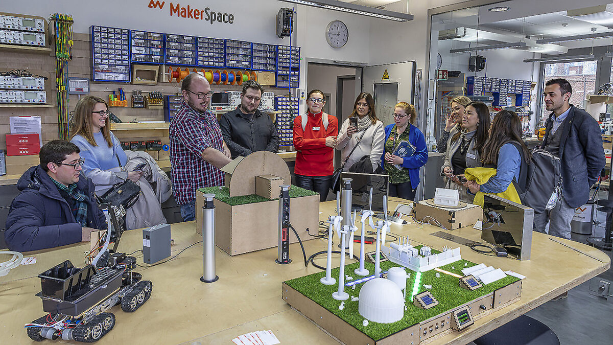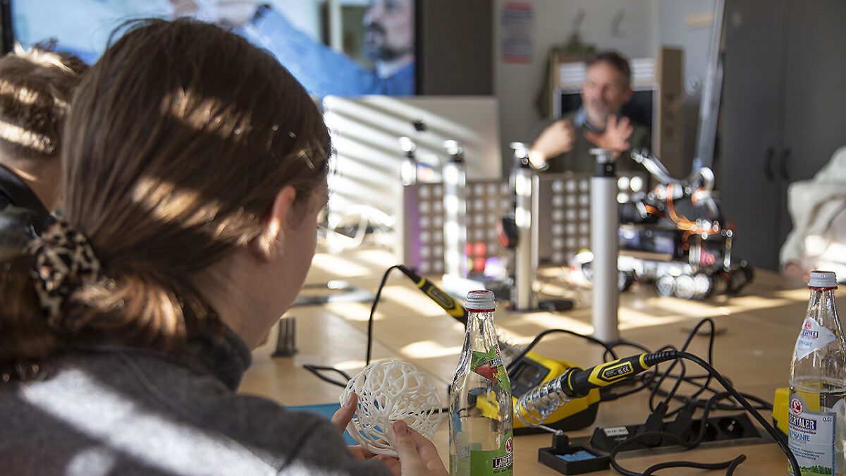 Im MakerSpace brummen Lasercutter, glühen Lötstationen und wachsen Objekte aus 3D-Druckern. Hier wird Handwerk Hightech – und Erfindergeist konkret. Gleich nebenan startet ein Mars-Rover zur KI-Expedition ins Unbekannte. Wer sich lieber auf der Erde orientiert, kann mit Drohnen die Geoinformatik erobern oder per Satellitenbildanalyse die Klimaveränderung kartieren.