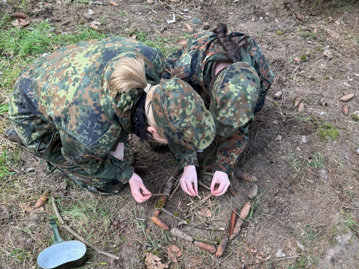 Am Mittwoch ging es für zwei Tage „ins Gelände“ auf den Truppenübungsplatz Grafenwöhr. Auf dem Truppenübungsplatz lernten alle, wie man ein Zelt baut, ernährten sich von Feldverpflegung und machten selbst Feuer. Die Teilnehmenden durften ein Artillerieschießen mit der Panzerhaubitze 2000 miterleben und als einen der absoluten Höhepunkte einem Schützenpanzer Marder mitfahren. – Wann hat man dazu schonmal eine Gelegenheit?