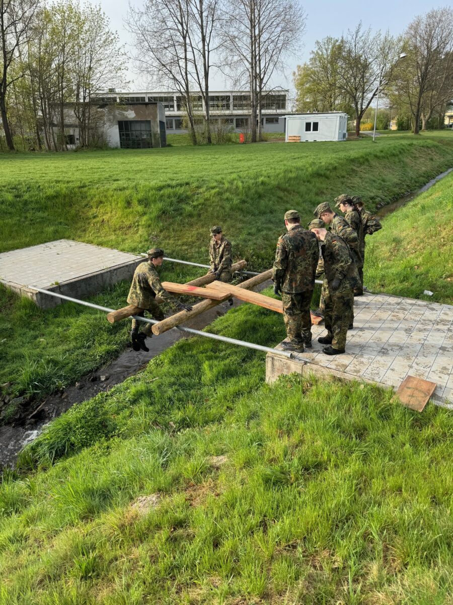 Dort kamen sie auch mit dem Kommandeur des Artilleriebataillons 131, Oberstleutnant Stefan Zadlo, erstmals ins Gespräch und wurden über die Grundlagen der deutschen Artillerie sowie das Programm der kommenden Woche informiert. Am Dienstag lernten die Teenager bereits die sportliche Seite des soldatischen Lebens kennen: Beginnend mit der „Lehr- und Trainingsanlage“ (kurz: LETRA-Bahn) mussten sie vor allem als Team agieren, um verschiedene Hindernisse mit nur wenig Hilfsmaterial zu überwinden.