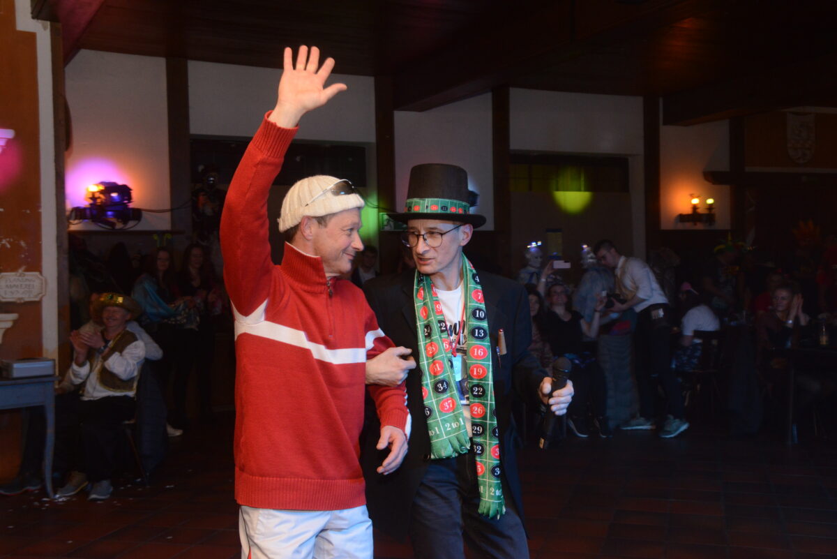 Kurz nach 22 Uhr kündigte der Vorsitzende des TSV-Skiclubs, Christian Enslein, einen „Stargast“ aus Österreich an. Kein Geringerer als DJ Ötzi war gekommen, um die Ballgäste noch mehr in Stimmung und gute Laune zu versetzen. Alex Schön war in diese Rolle geschlüpft, und seinen Bitten, sich auf die Tanzfläche zu begeben, folgten die Besucher.