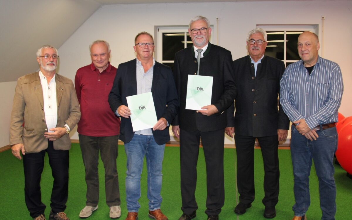 Lill hatte auch eine besondere Überraschung mitgebracht. Für ihren Einsatz und die außergewöhnlichen Verdienste für den DJK-Diözesan- und Bundesverband bekamen Max Peter, Georg Bauer, Berndt Fuhrich und Norbert Frisch das Ehrenzeichen der DJK in Gold samt Urkunde überreicht. Peter ist seit 1995 in den verschiedensten Funktionen des Vereins tätig, Bauer arbeitet in der DJK seit 2001 tatkräftig mit. Beide stellten sich zwar nicht zur Wiederwahl, wollen dem Verein aber auch in Zukunft mit Rat und Tat zur Seite stehen. Berndt Fuhrich und Norbert Frisch sind seit 1993 für die Finanzen des Vereins zuständig und wurden auch für die nächsten beiden Jahre wiedergewählt.