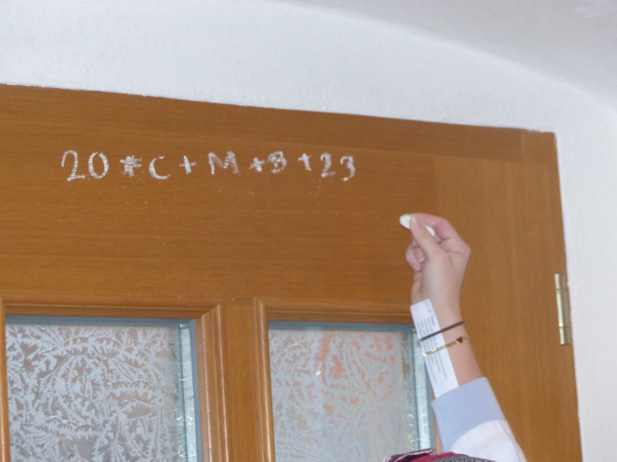 So trugen sie entweder an den Haustüren oder in den guten Stuben vor dem Christbaum ihre Bitten vor. Anschließend kleben sie den Segenswunsch C+M+B an die Türen oder sie schrieben es mit der Kreide an.