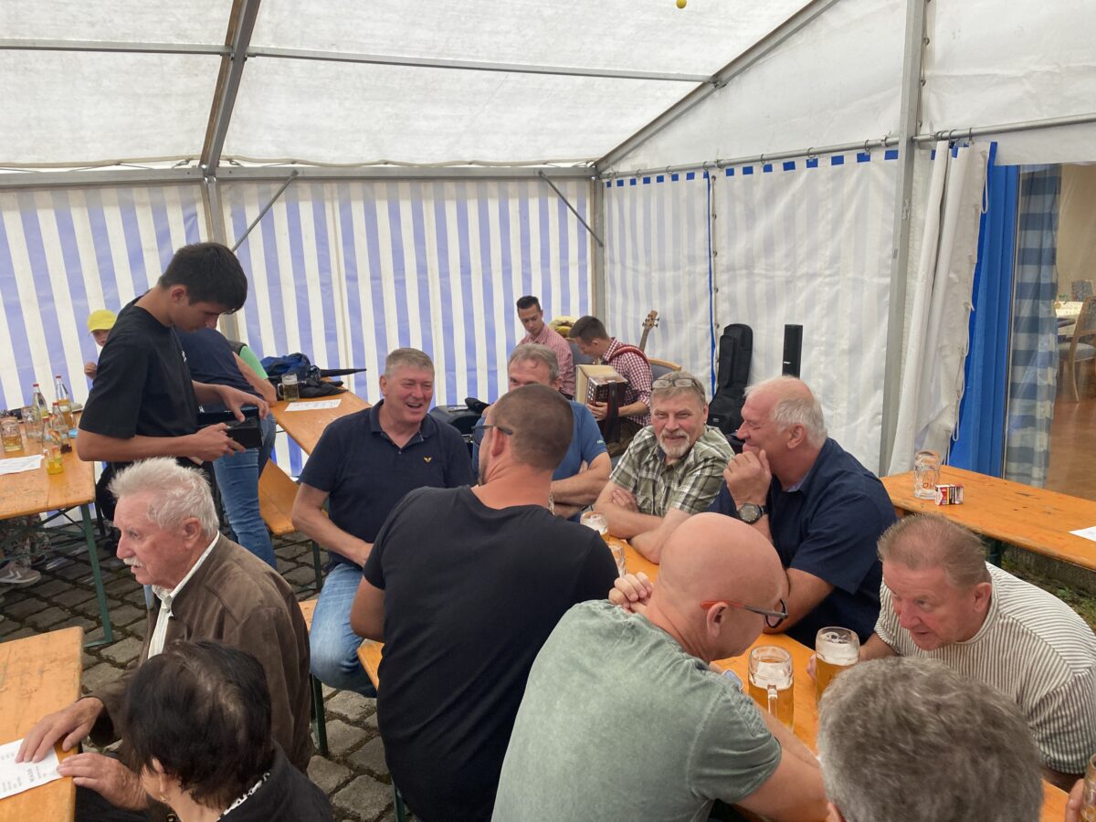 Auf dem Dorfplatz ließen es sich die Gäste in den aufgestellten Zelten gut gehen, das fleißige Schankteam konterte aufkommenden Durstgefühlen sofort mit kühlen Getränken. Wegen der feuchten Wetterprognosen musste man allerdings die Abenteuerhüpfburgen eingepackt lassen.