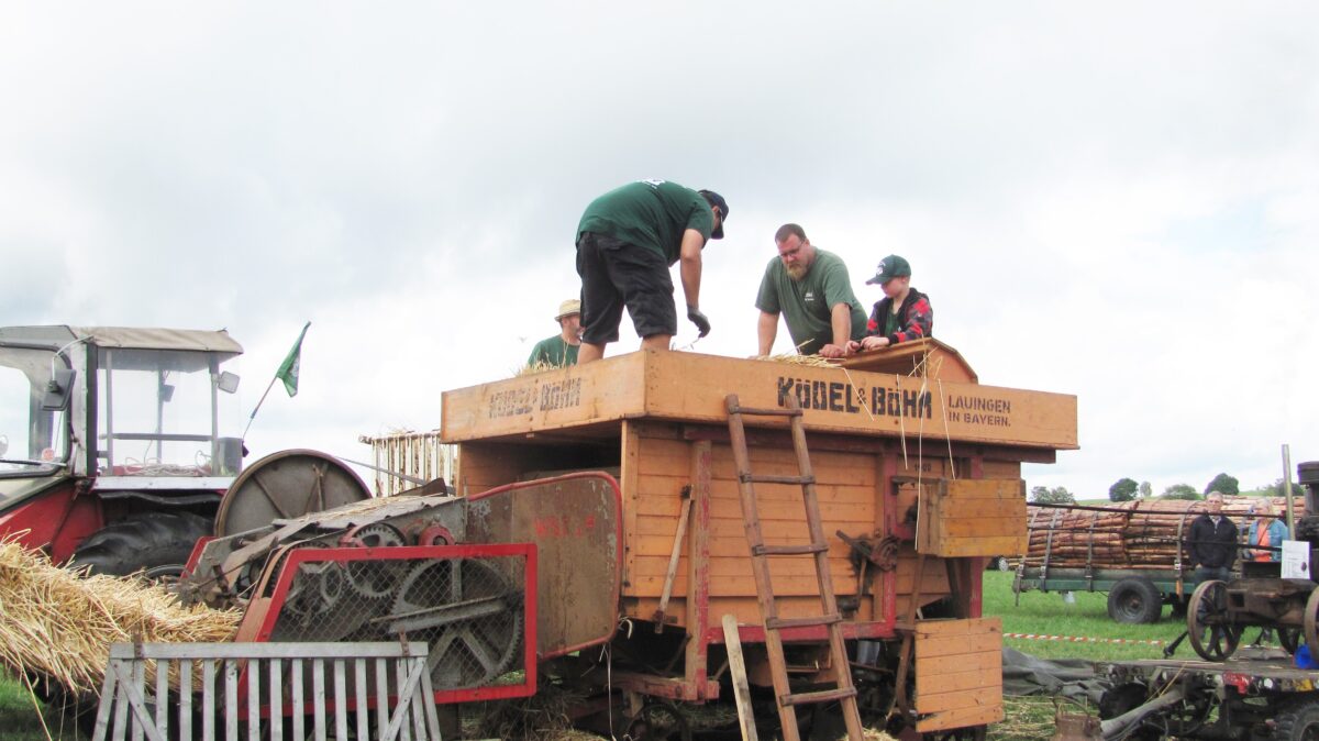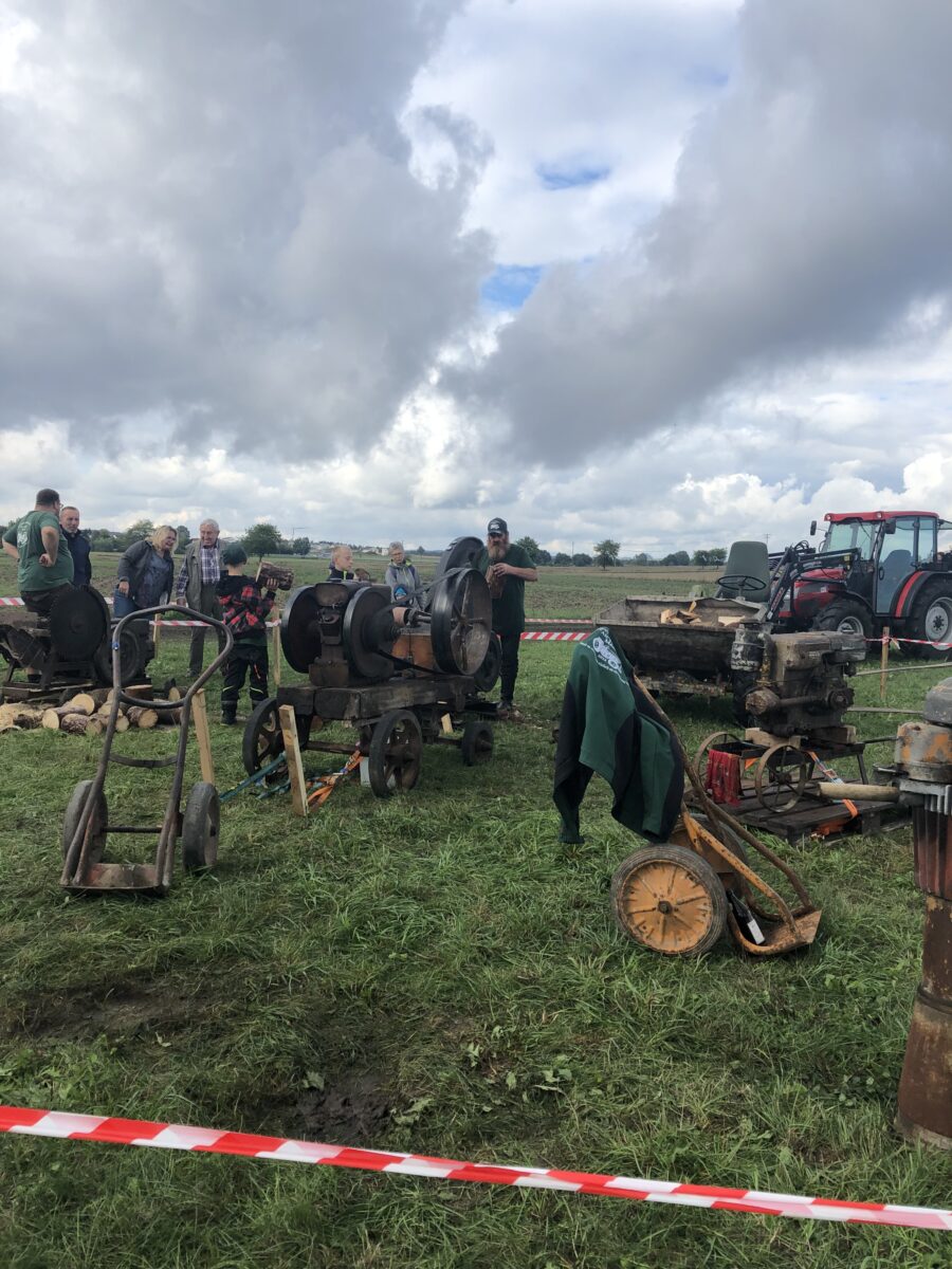 Selbst einige Regenschauer hielten die Leute nicht davon ab, das Fest zu besuchen. Viele Zuschauer gab es, als die Mitglieder des Stammtisches mit den alten Maschinen Holz zerkleinerten, sägten und spalteten. Die Kinder amüsierten sich auf der Strohhüpfburg. Es gab eine ganze Reihe Oldtimer-Bulldogs zu bestaunen, von den Gäste waren auch einige mit ihrem alten Traktor angereist.