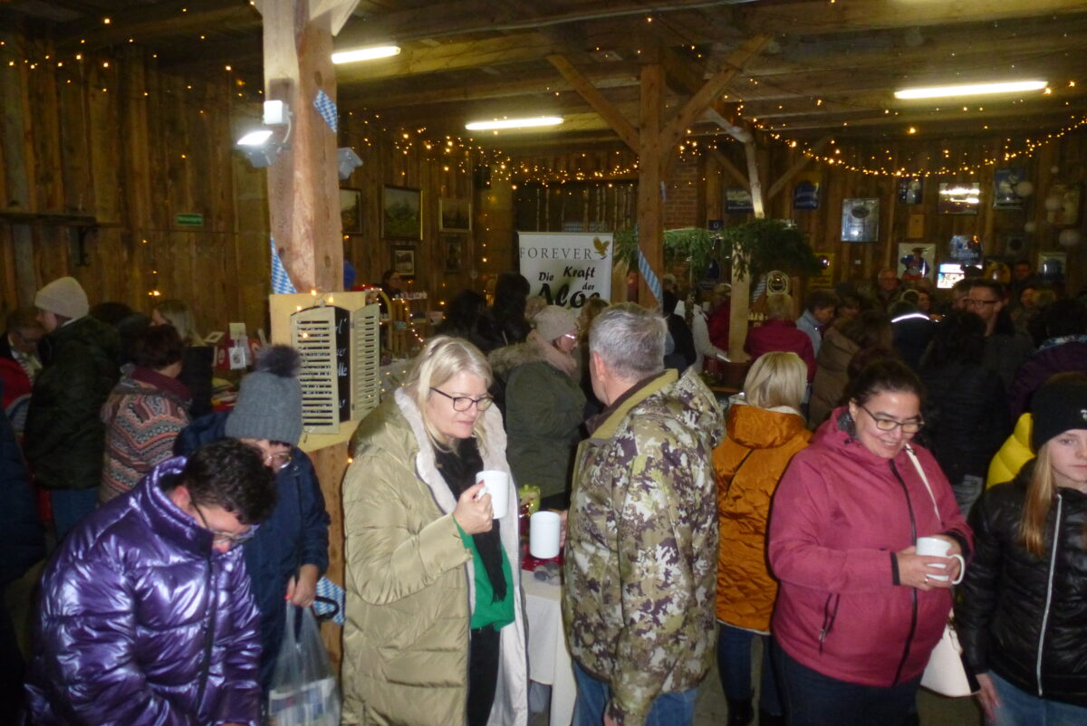 Die Hobbykünstler präsentierten Dekoratives rund um Advent und Weihnachten: Kreationen aus Holz, Glas und Metall, handgestrickte Arbeiten, Naturkosmetik und handgefertigten Schmuck. „Alles an Naturfloristik weg“ hieß es am Stand der Gerbersdorferin. Nach dem Schneefall waren an den überdachten Stehtischen im Hof Glühweine, heißer Hugo, Dotsch, Steaks und Bratwürste sehr gefragt.