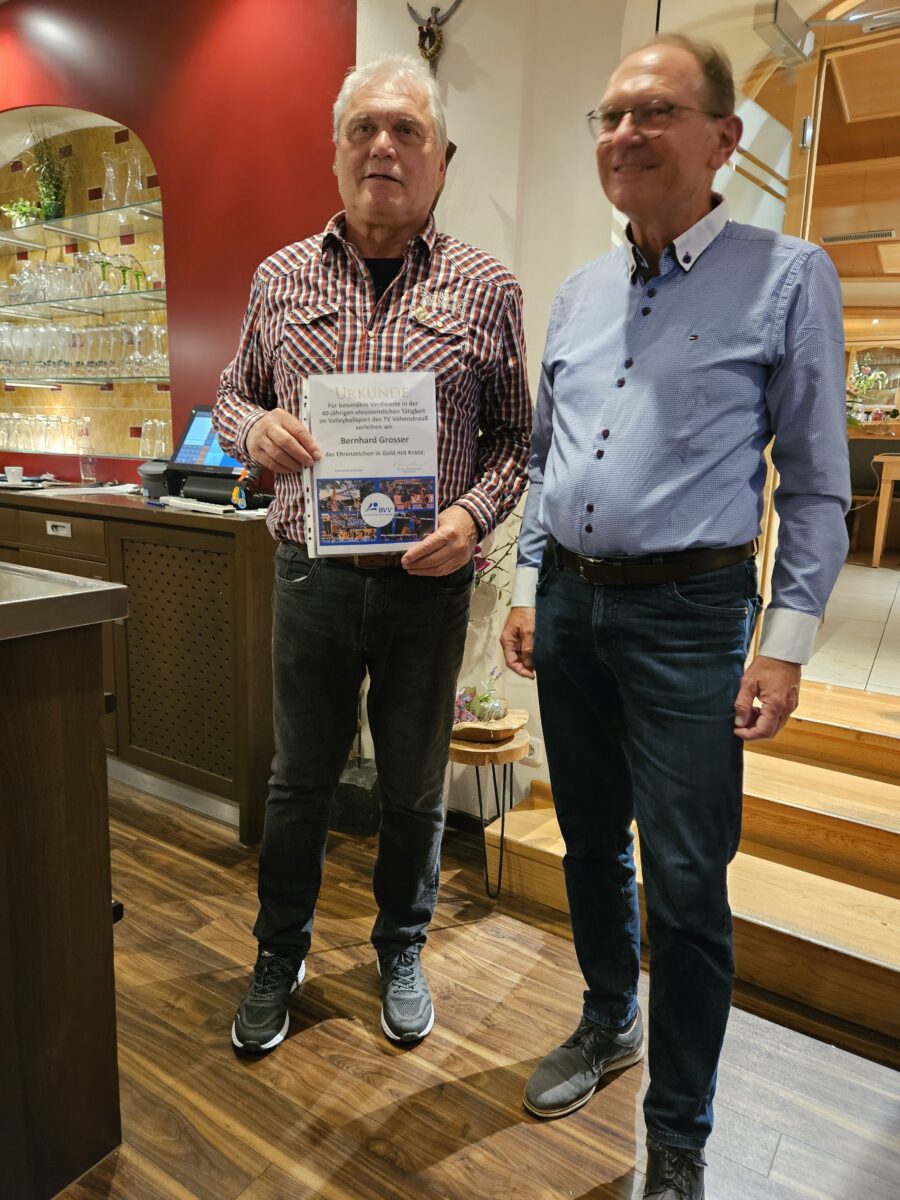 Hennes Kleierl, seit 40 Jahren als Übungsleiter aktiv und wichtige Stütze im Verein, besonders im Zusammenhang mit dem Projekt „Skilift Fahrenberg“, wurde für seine Zuverlässigkeit und sein Engagement im Hintergrund geehrt.