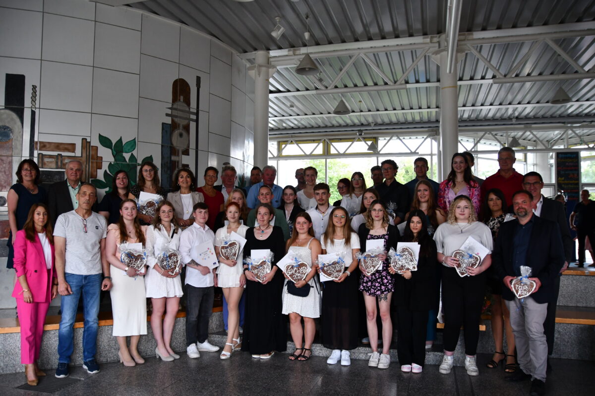20 Schülerinnen und Schüler, die ihre Berufsschulausbildung mit der Note 1,0 bis 1,8 im Abschlusszeugnis als Beste ihres Berufes abschlossen, sowie sieben Absolventinnen und Absolventen des doppelqualifizierenden Bildungsgangs Berufsschule PLUS, wurden im Beisein zahlreicher Ehrengäste, Ausbildungsbetriebe, Eltern und Lehrer in der Aula der Berufsschule geehrt. Zu den Geehrten zählen Olga Klein, Johannes Selhorst, Magdalena Leopoldseder, Maria Distler, Lakisha Wörle, Jessica Trapp, Sonja Woppmann, Florian Busl, Benjamin Pohle, Christopher Graf, Vanessa Münchmeier, Sarah Stock, Peri Ciftci, Carina Huynh, Tobias Meier, Stella Rofi, Franzisca Kunz, Tamara König, Annika Müller, und Emilia Gaßner. Berufsschule PLUS-Absolventen sind Lea Stecher, Johanna Schönberger, Ida Hilburger, Alexandra Ott, Leonie Martin, Sandra Prechtl und Biagio Herms.