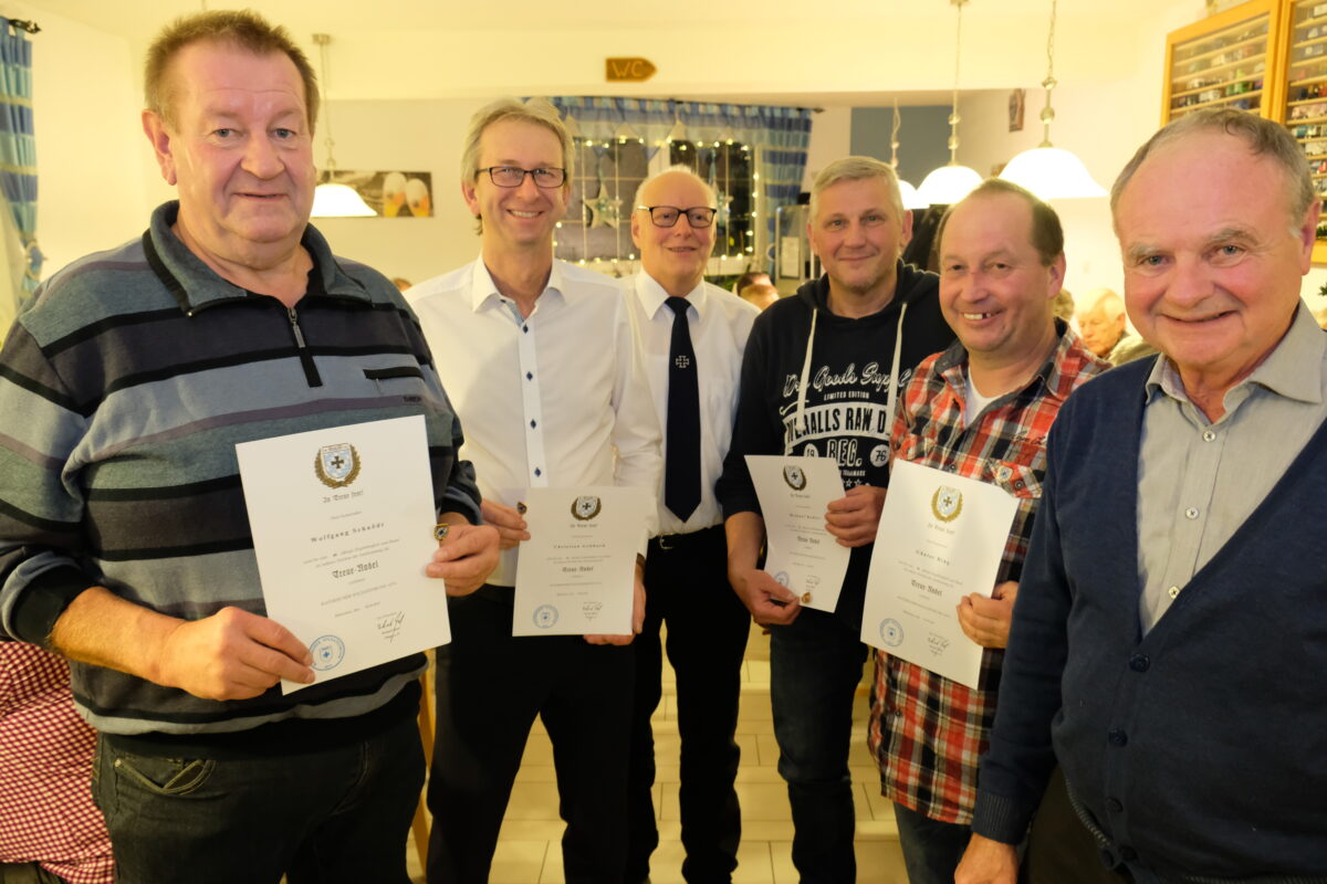 Eine gute Gelegenheit bot sich beim Kameradschaftsabend der KSK im Gasthaus Schmid in Tremmersdorf. In familiärer Atmosphäre herrschte im Gastraum nach einem herzhaften Abendessen Vorweihnachtsstimmung, als der Vorsitzende zur Ehrung verdienter Mitglieder rief. Viele KSKler sind Säulen des Ortslebens und gleichzeitig langjährige Mitglieder des Soldatenbundes. Umso größer war der Dank des Vorsitzenden, insbesondere Tremmersdorfer Mitglieder des Vereins mit Treuenadeln und Urkunden des Bayerischen Soldatenbundes (BSB) auszuzeichnen. In Treue fest hieß es auf den Urkunden, unterzeichnet von Oberst a.D. Richard Drexl, Landesvorsitzender des BSB.