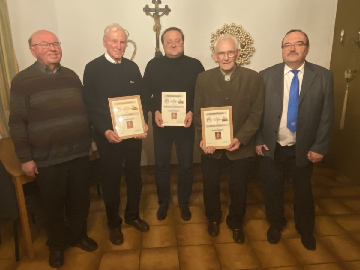 Erfreulich war, wieder langjährige Mitglieder für ihre Treue mit einer Dank- und Ehrenurkunde zu würdigen. So erhielten für 25 Jahre Mitgliedschaft Michael Schönberger, Helmut Patzelt, Anton Gürtler, Johann Kick junior und Alfons Wurzer, für 50 Jahre Altbürgermeister Horst Robl und für 60 Jahre Alois Gürtler eine Urkunde. Mit dem Weihegebet und einem Marienlied fand die Versammlung einen würdigen Abschluss.
