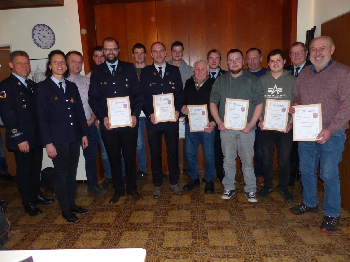 Der Vorsitzende Tobias Stangl konnte an diesem Tag eine ganze Reihe seiner Mitglieder ehren. Er führte die ehrenvolle Aufgabe der Urkundenübergabe aus, unterstützt von seiner Stellvertreterin Susanne Guse, dem Kommandanten Hermann Federl, Kreisbrandmeister Christian Demleitner und Bürgermeister Anton Kappl. Für ihre zehnjährige Mitgliedschaft wurden Thomas Stangl, Matthias Stangl, Andreas Stangl, Sebastian Bock, Lukas Beierl und Johannes Beierl ausgezeichnet.