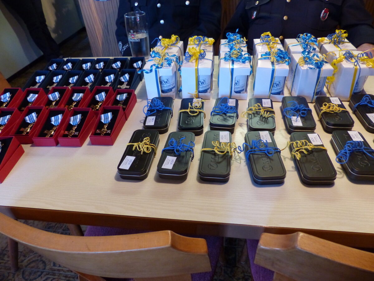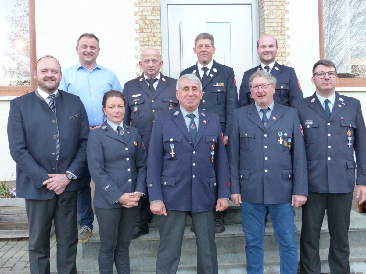 Die Ehrungen zeichneten sowohl langjährige Dienste als auch besonderes Engagement aus. Das silberne Abzeichen für 25 Jahre sowie das goldene Abzeichen für 40 Jahre Dienst wurden von Kreisbrandrat Marco Saller angebracht, während Kreisbrandmeister Christian Demleitner und Kreisbrandinspektor Martin Weig mit Glückwünschen, einer Tasse und einem Rettungsmesser als Geschenke zur Seite standen.