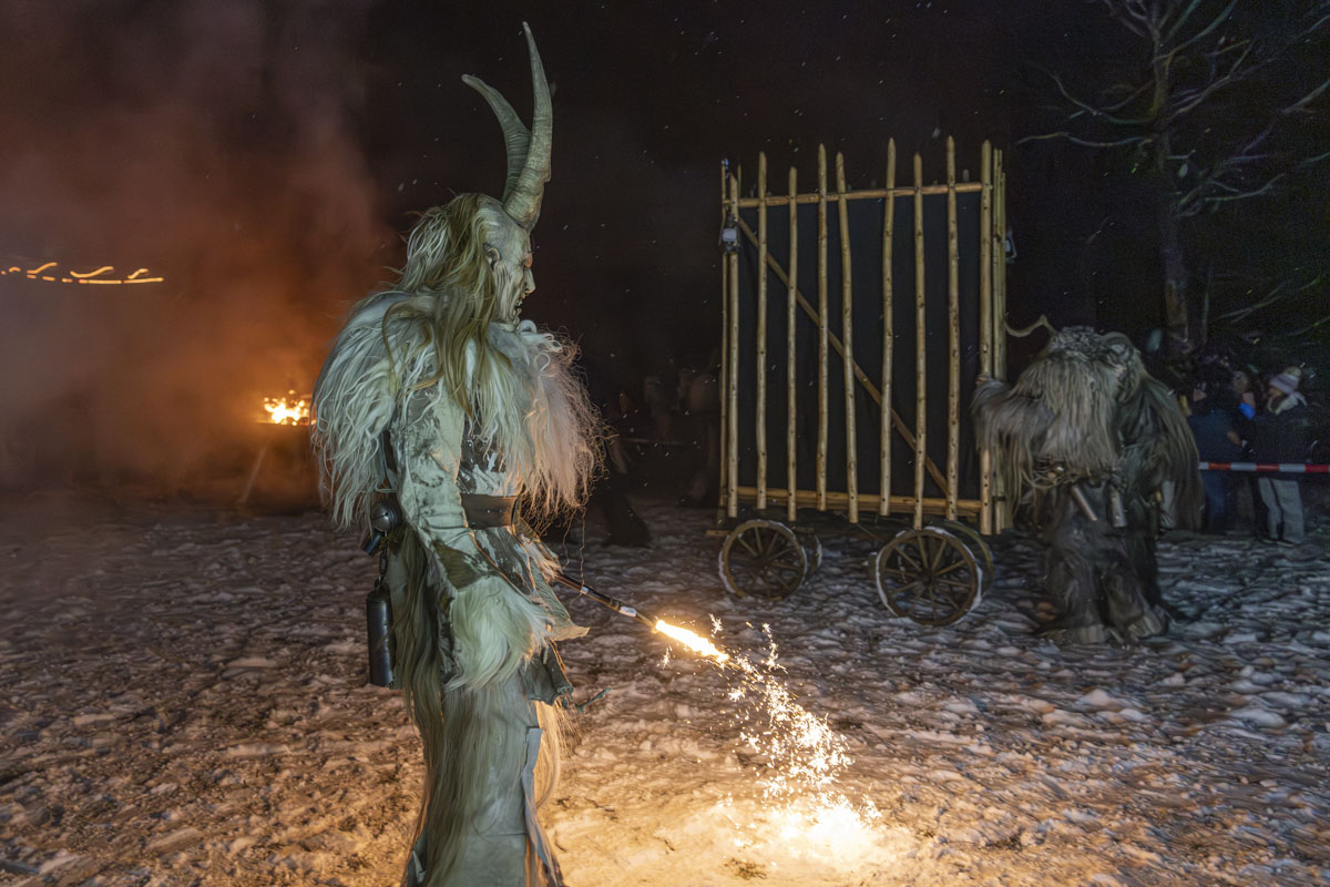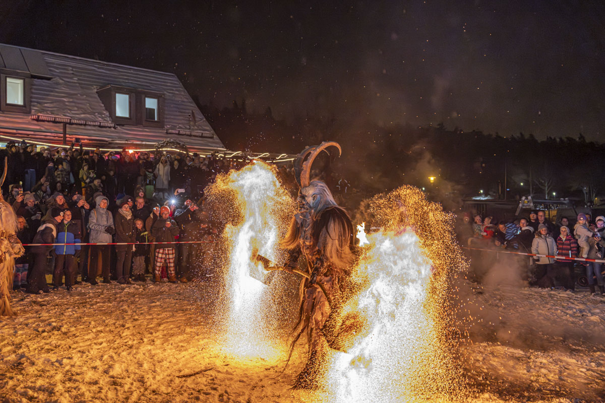 Ein atemberaubender Auftritt der Stoapfalz Deifl'n beim Wintermarkt am Hexenhäusl