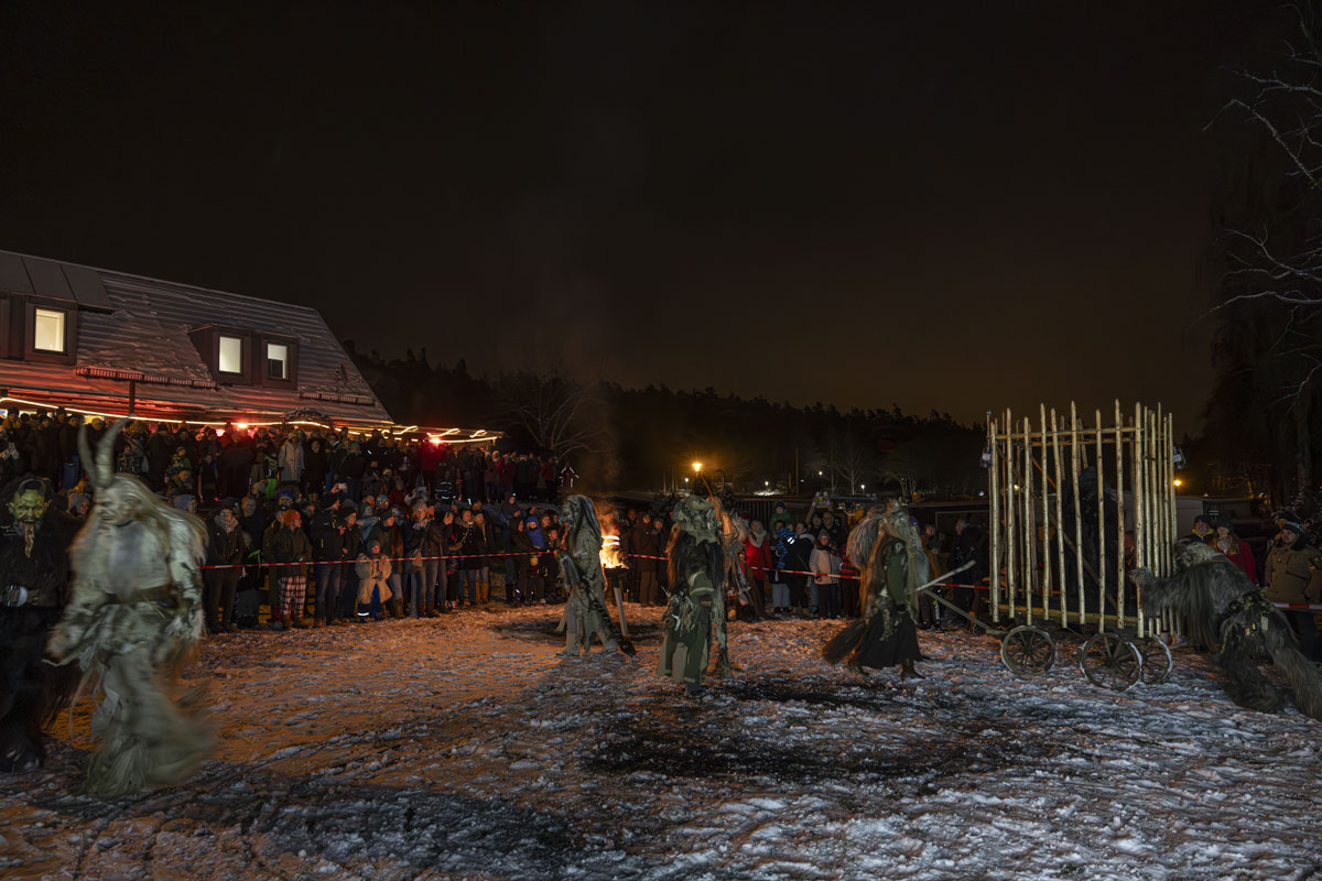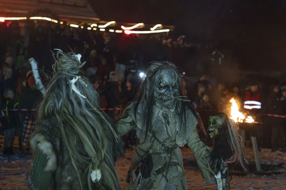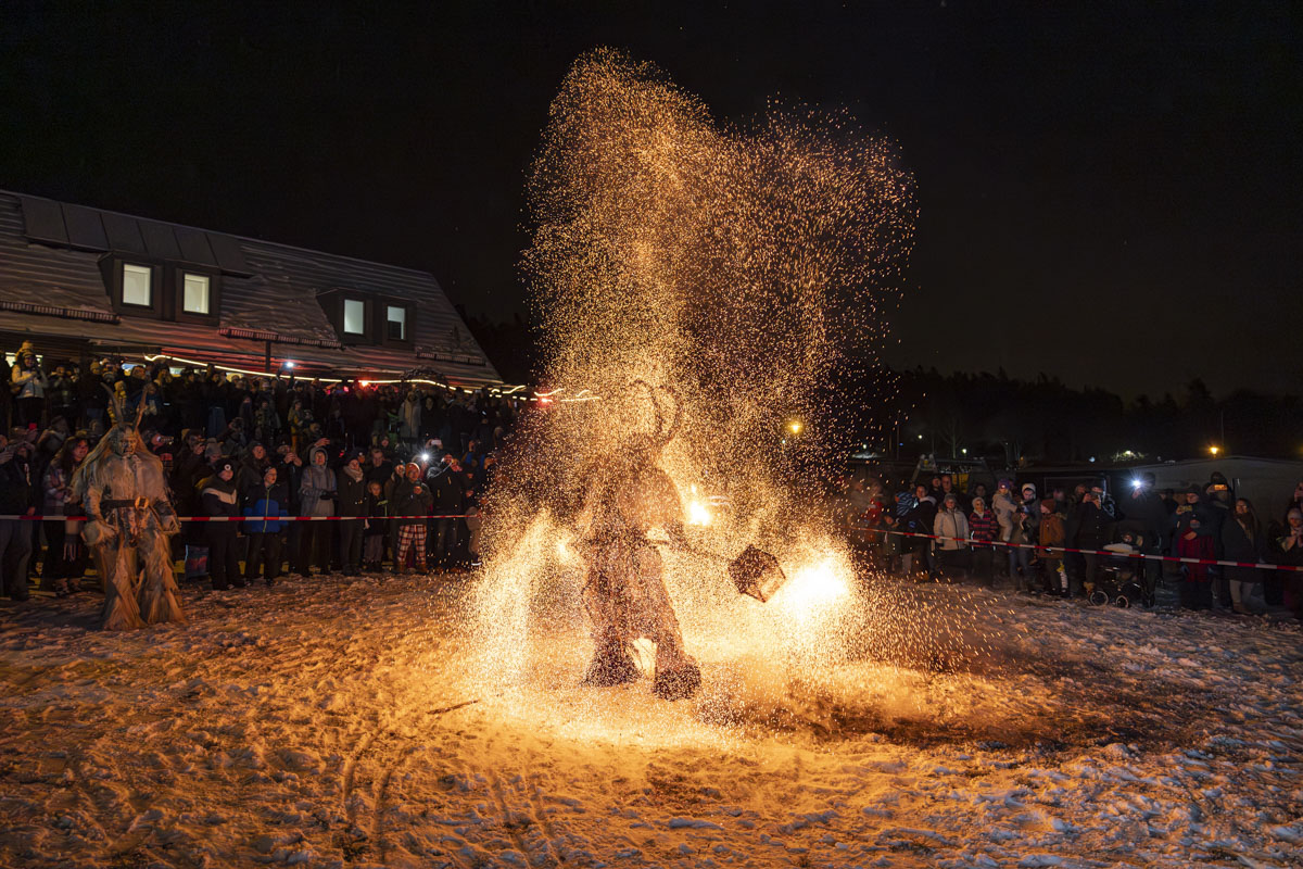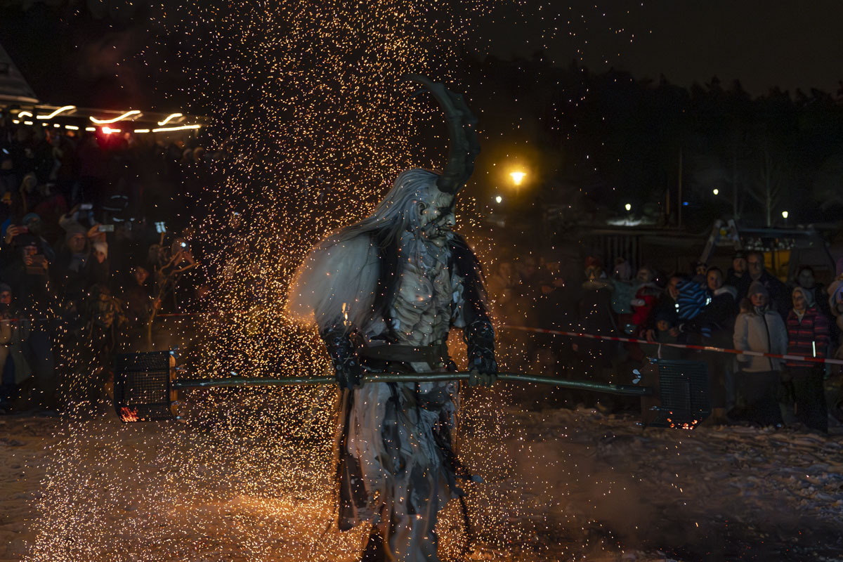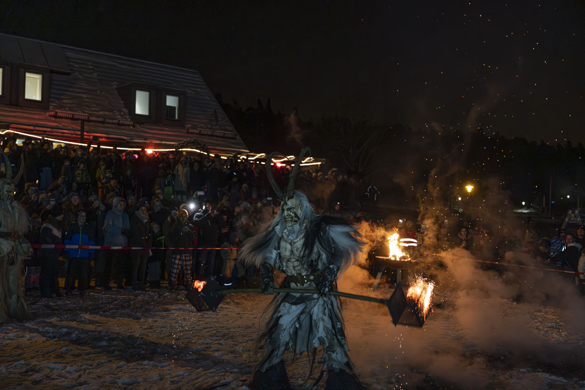 Die Gruppe Stoapfalz Deifl’n ist für ihre handgeschnitzten gruseligen Masken und atemberaubenden Darbietungen bekannt. Mit einer Mischung aus traditionellen Elementen, moderner Performance-Kunst und Feuershow begeisterten sie die Gäste mit einer spannenden und gruseligen Atmosphäre.