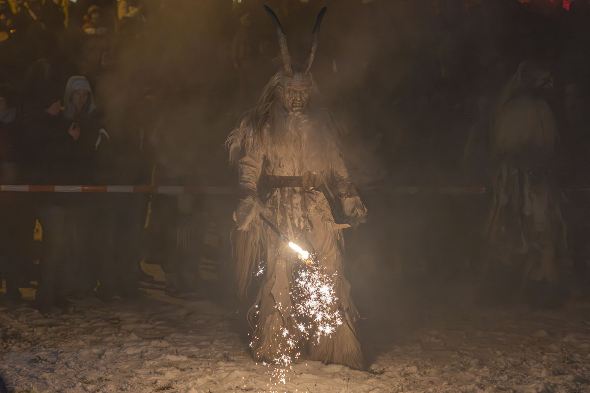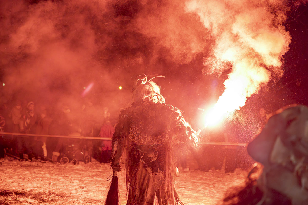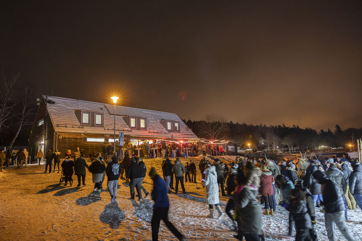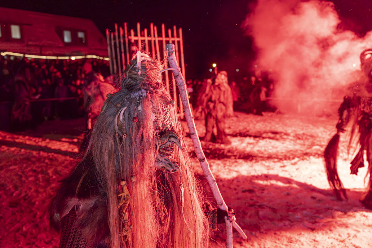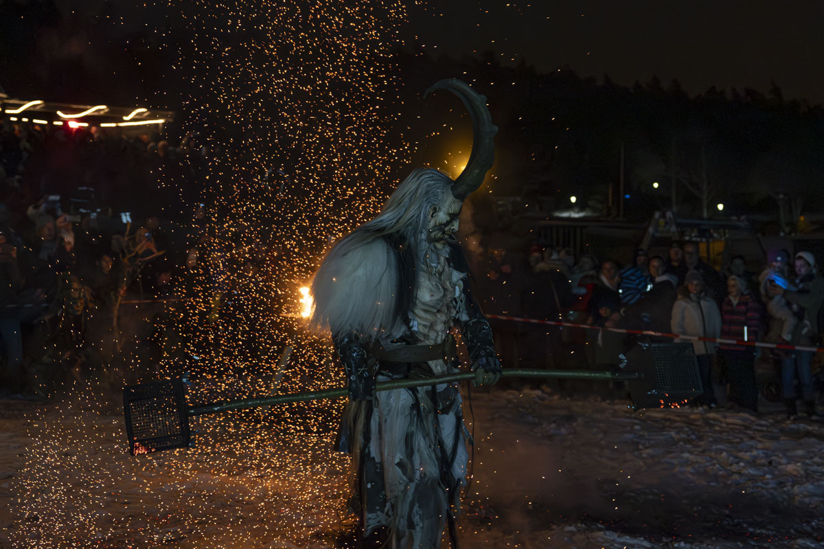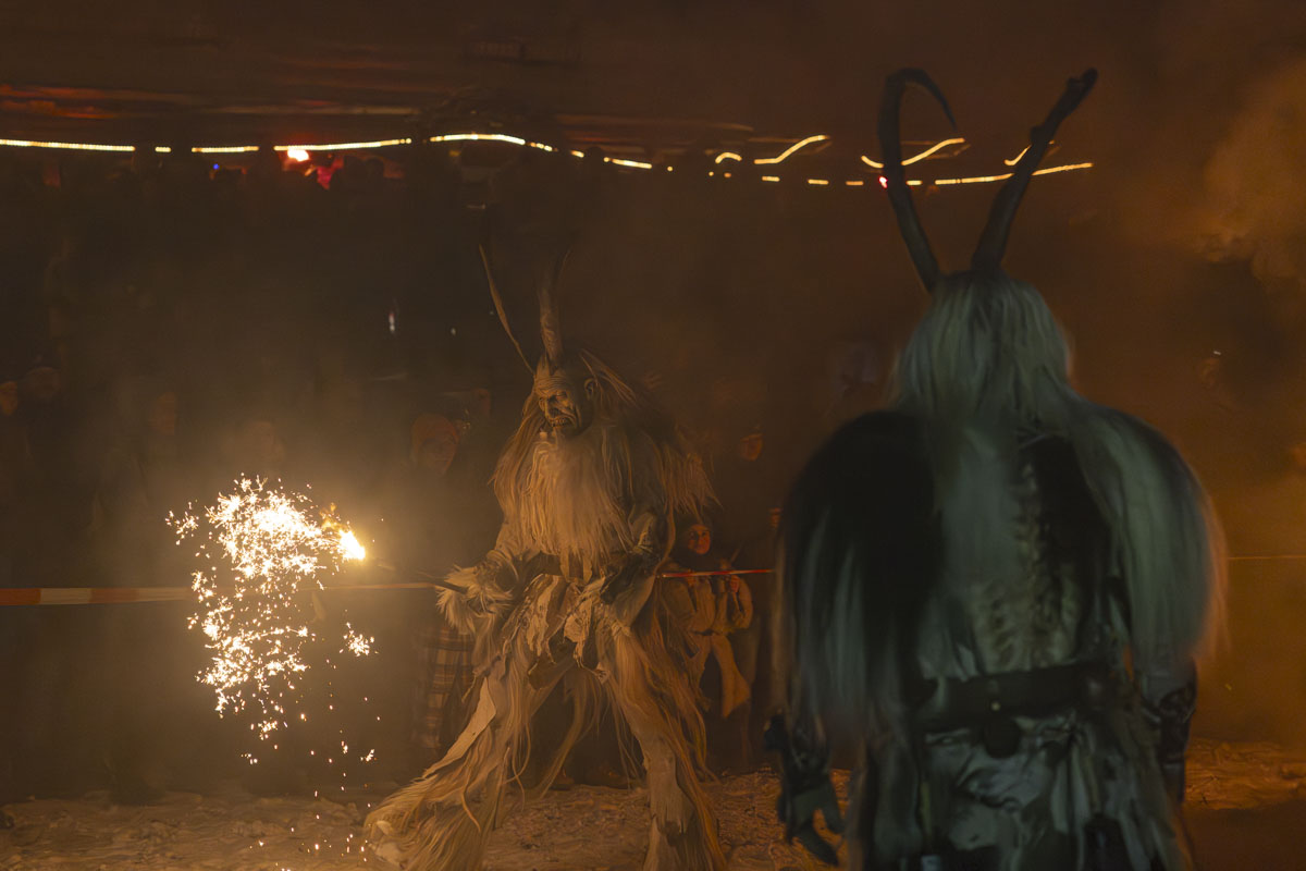 Die Gruppe Stoapfalz Deifl’n ist für ihre handgeschnitzten gruseligen Masken und atemberaubenden Darbietungen bekannt. Mit einer Mischung aus traditionellen Elementen, moderner Performance-Kunst und Feuershow begeisterten sie die Gäste mit einer spannenden und gruseligen Atmosphäre.