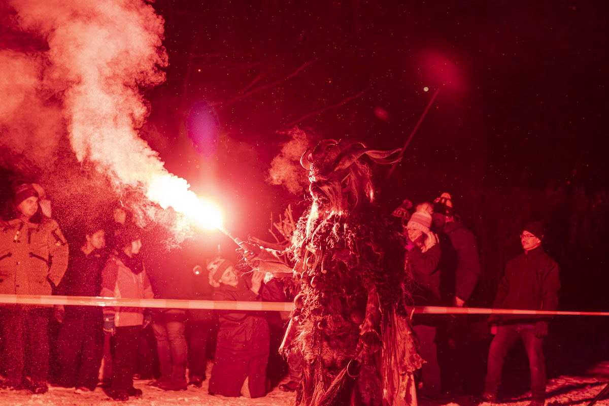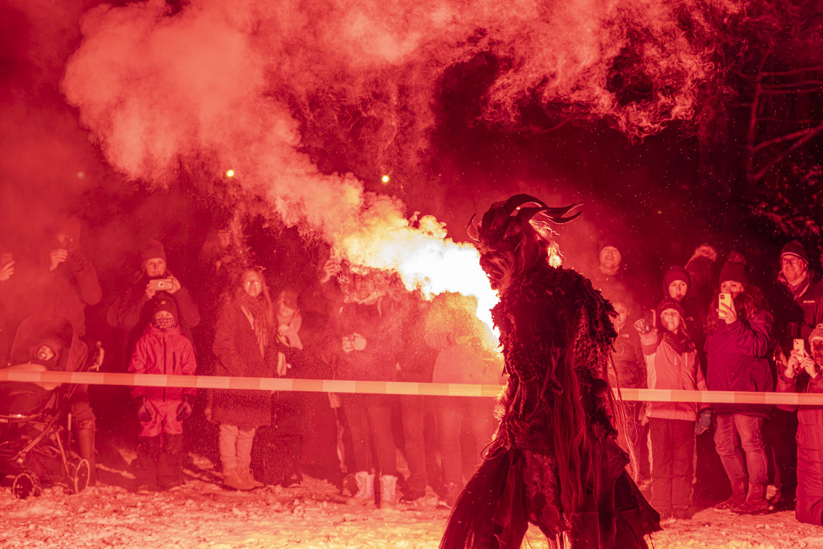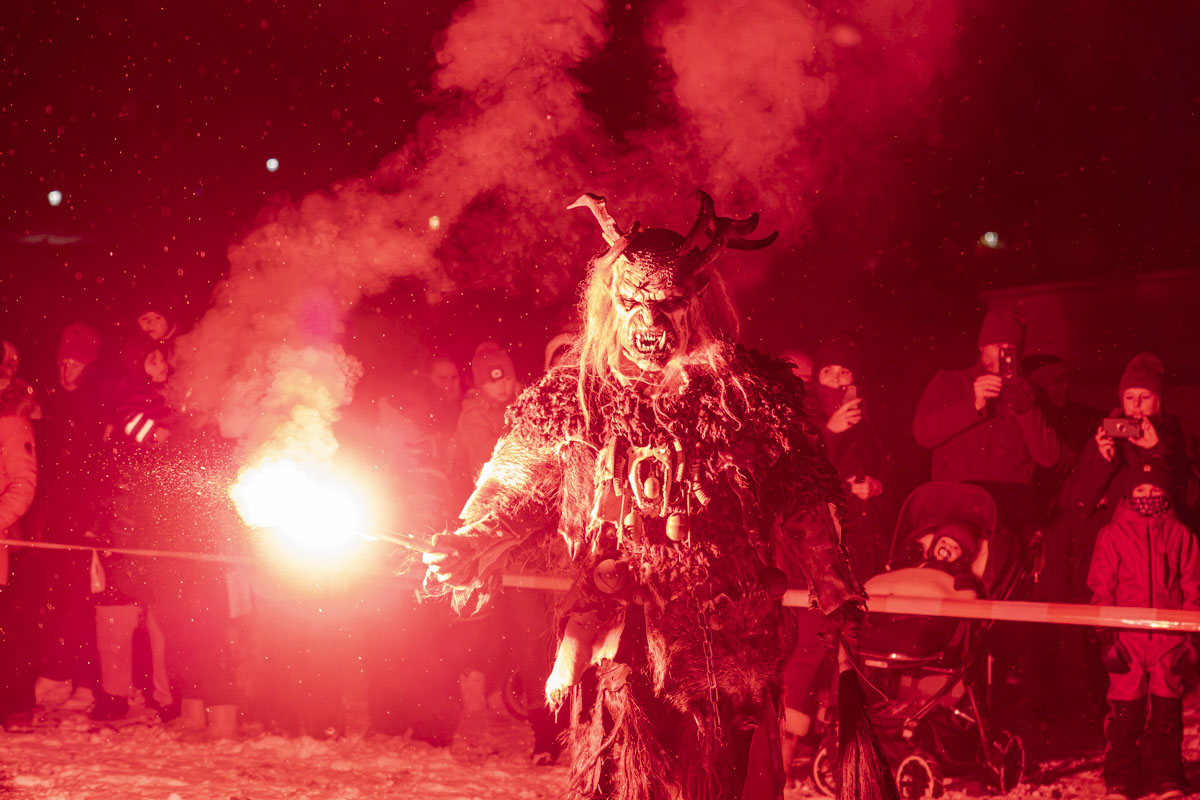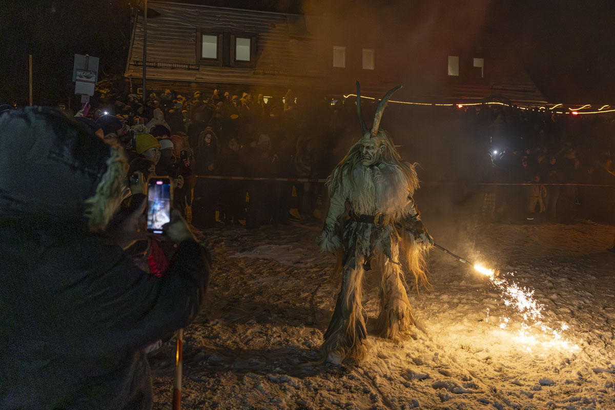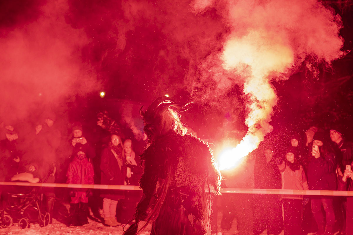 Die Gruppe Stoapfalz Deifl’n ist für ihre handgeschnitzten gruseligen Masken und atemberaubenden Darbietungen bekannt. Mit einer Mischung aus traditionellen Elementen, moderner Performance-Kunst und Feuershow begeisterten sie die Gäste mit einer spannenden und gruseligen Atmosphäre.